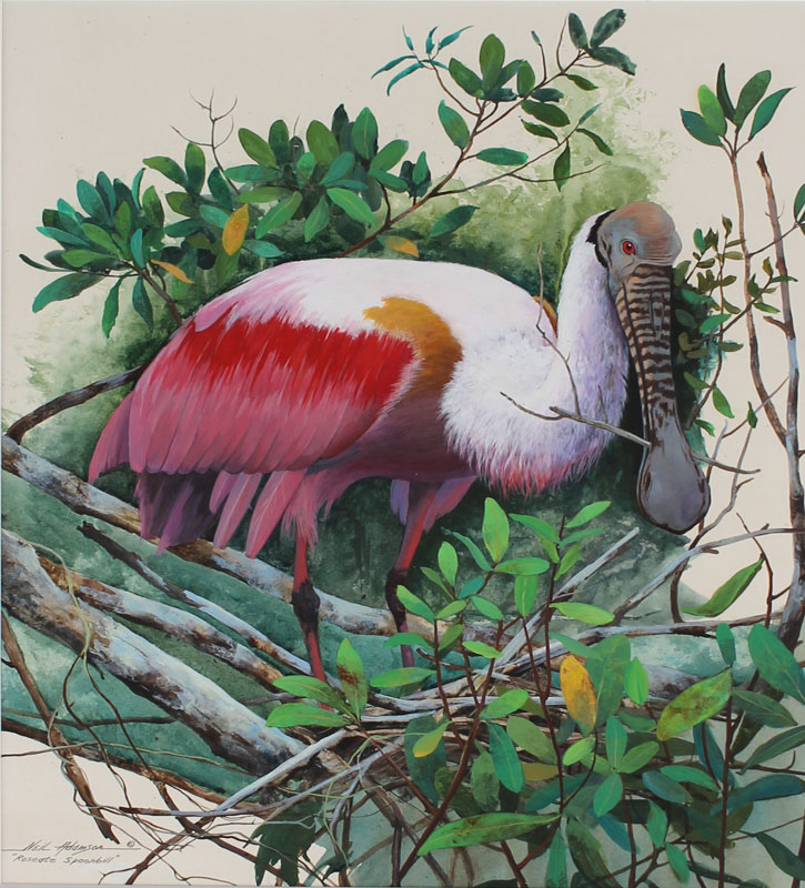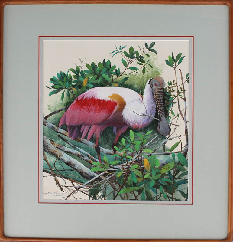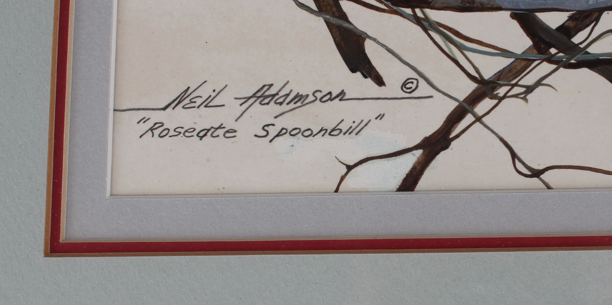 ADAMSON, Neil (American, 20th Century): ''Roseate Spoonbill'', Acrylic/Board, site size is 23'' x 18.5'', signed and titled in lower left, custom frame 35.5'' x 30.5''.
