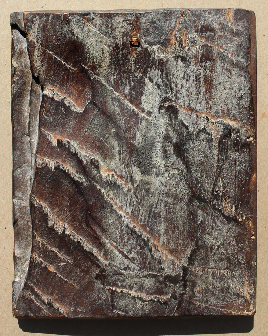 CONDITION: Craquelure throughout with flecks of paint loss, worm hole, scattered abrasions, sold as is.