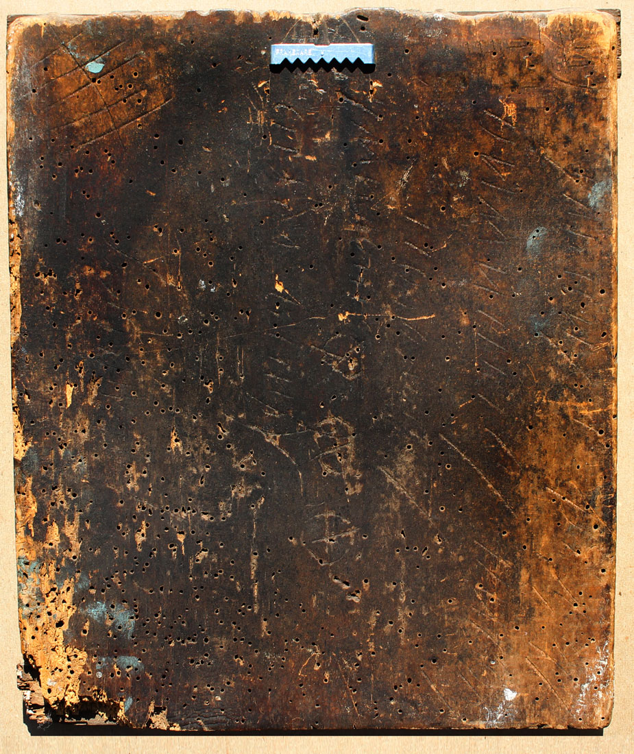 CONDITION: Scattered loss, inpaint, several flecks and abrasions, worm holes, sold as is.