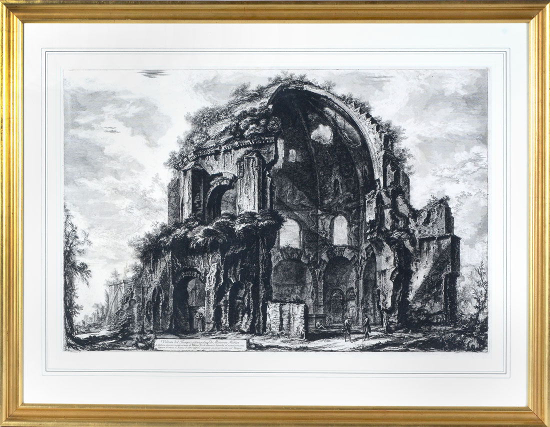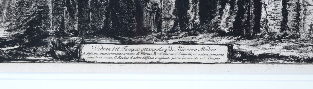 PIRANESI ENGRAVING: ''Temple of Minerva Medica'', sight size 18.5'' x 27'', framed 27'' x 35.5''. Provenance: Leon and ''Billy'' Goldenberg Collection.