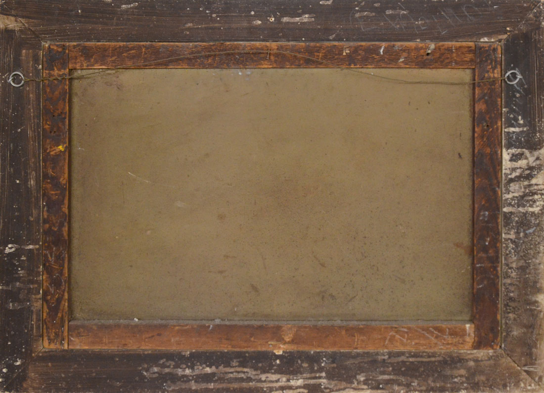 CONDITION: Craquelure throughout, several touches of inpaint, vertical scrape in the paint of the mid section extended down to the bottom margin, frame has loss, sold as is.