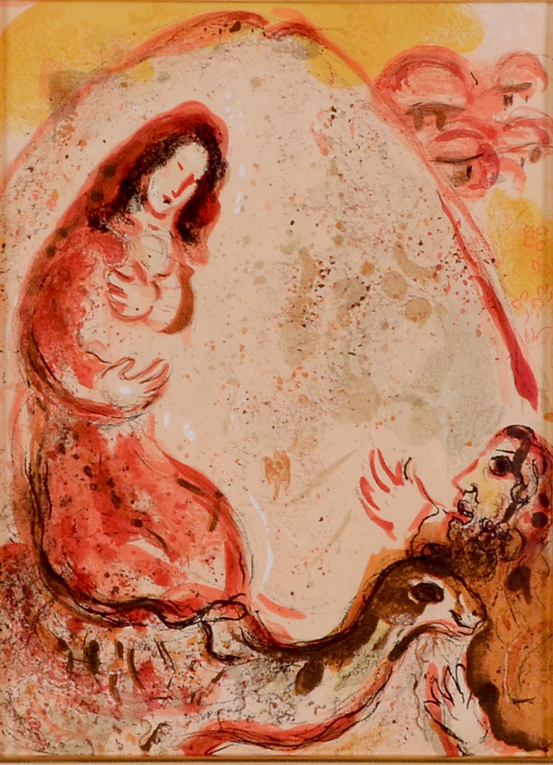 CHAGALL, Marc, (Russian, 1887-1985): ''Rachel Steals Her Father's Graven Images'', Lithograph, sight size is 9.25'' x 12.25'', framed 30'' x 26.5''.
