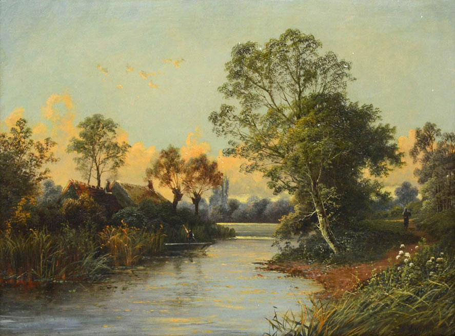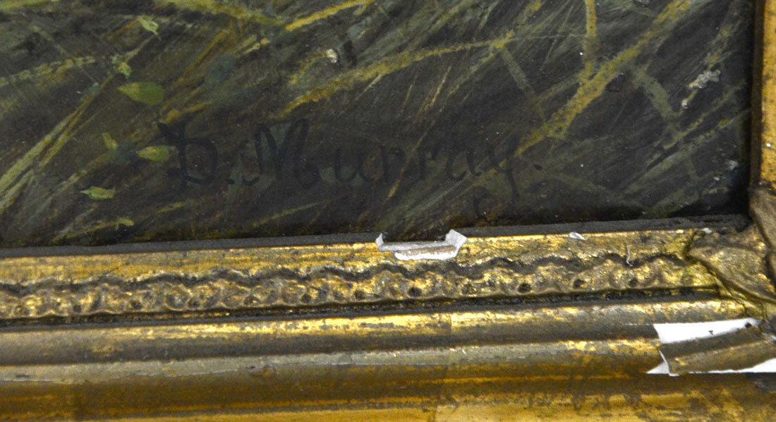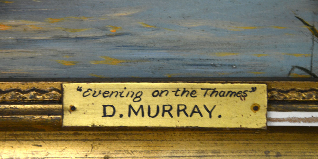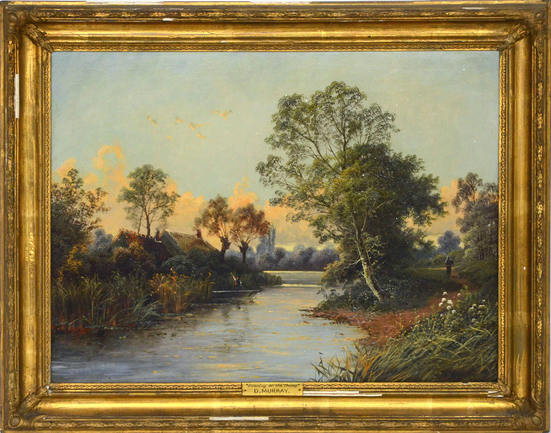 EVENING ON THE THAMES PAINTING SIGNED D. MURRAY: Oil/Canvas, 18'' x 24'', signed lower right, titled verso, gilded gesso frame is 23'' x 28.50''.