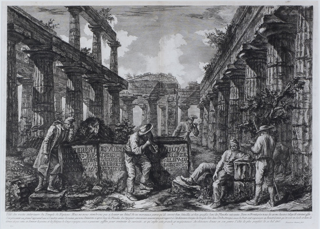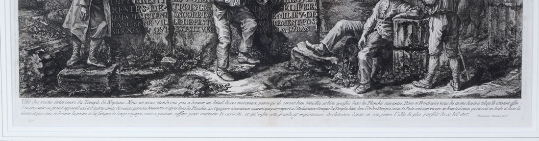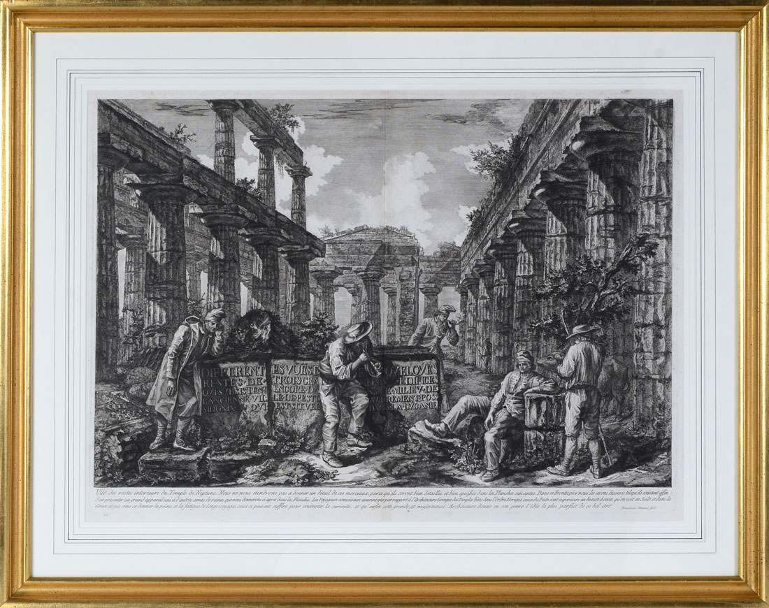 PIRANESI ENGRAVING: ''Vue Des Restes Interieurs Au Temple De Neptune'', sight size 19.5'' x 27'', framed, 27.5'' x 35.5''. Provenance: Leon and ''Billy'' Goldenberg Collection.