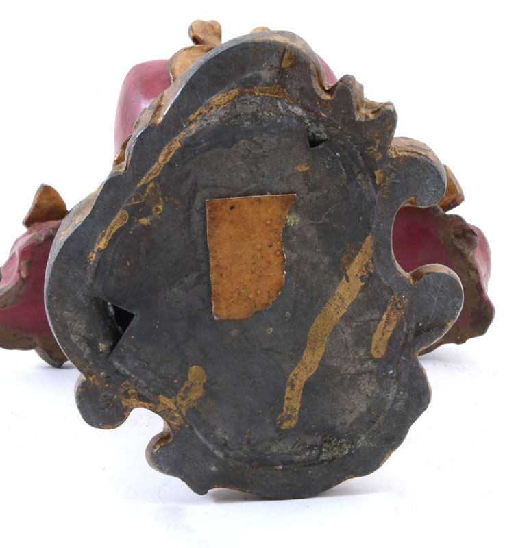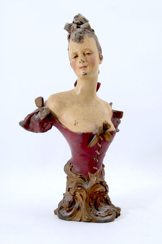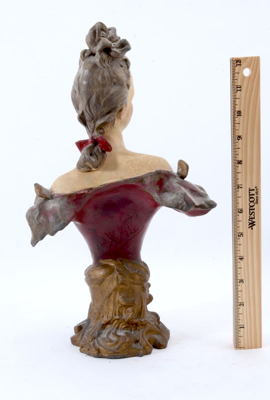 ANTON NELSON NOUVEAU SPELTER SCULPTURE: Torso length painted statue of young maiden, 14'' h., signed verso.