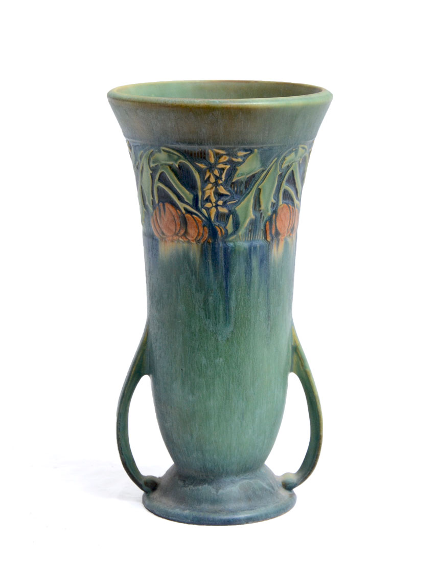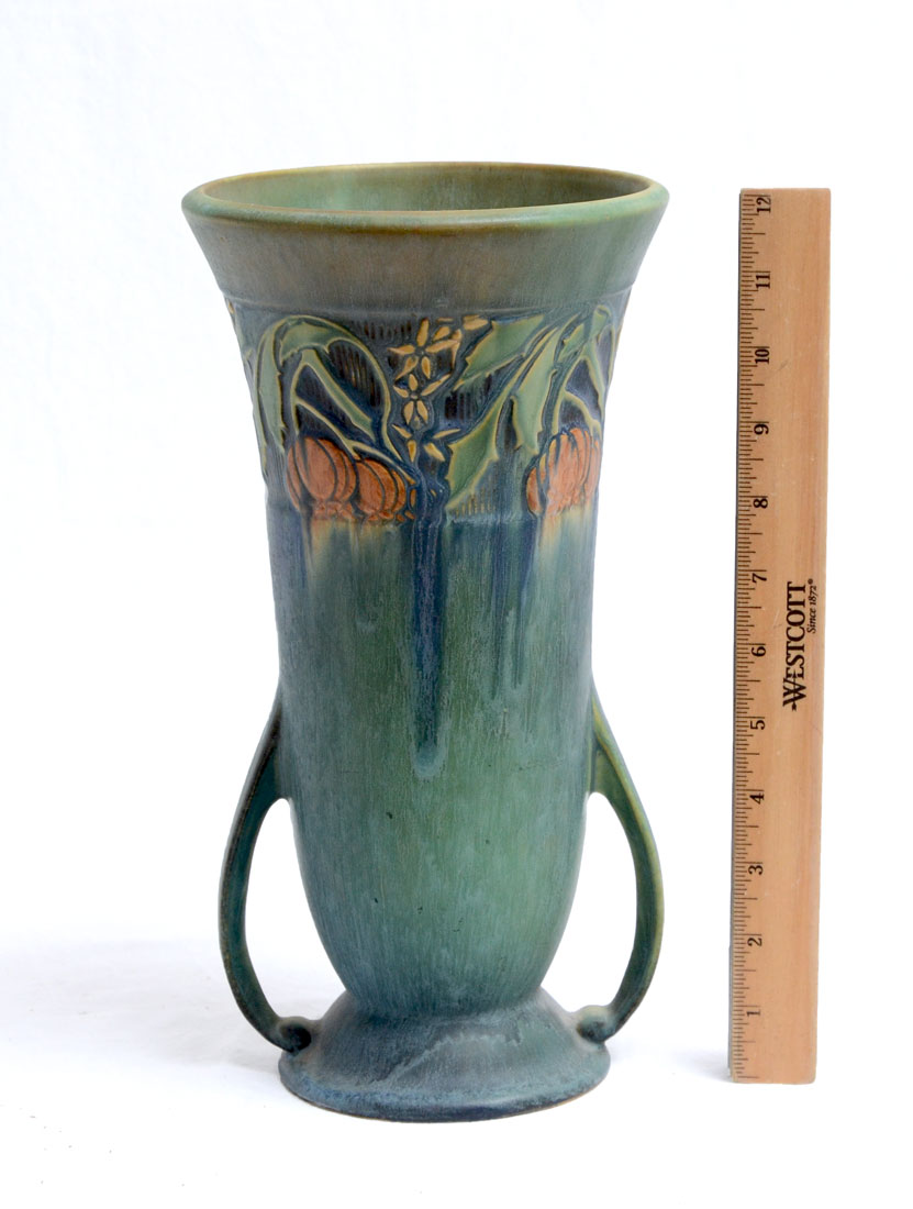 ROSEVILLE BANEDA 598-12'' HANDLED VASE: Form 598, unmarked, overall 12 1/4'' x 6 1/2'' dia.