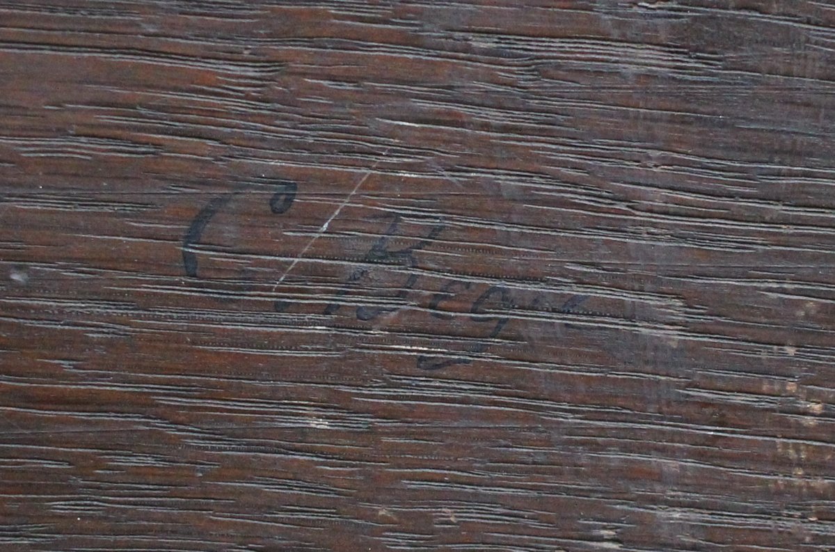 CONDITION: Several scattered touches of inpaint, craquelure, frame has wear, sold as is.