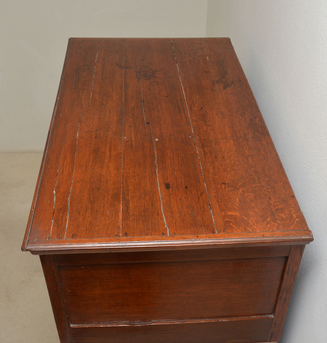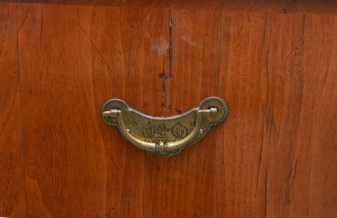 CONDITION: Age splits to top, minor missing pieces of trim, other wear consistent with age and use.