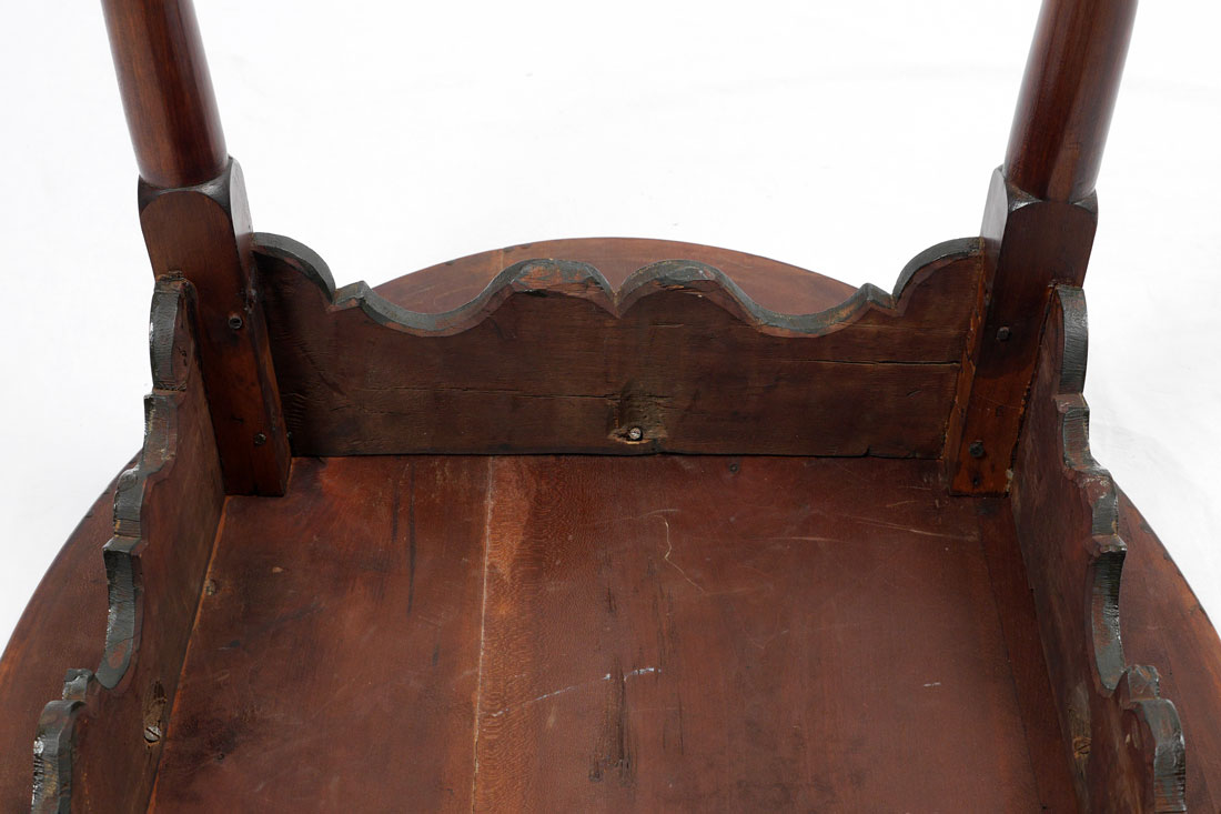 CONDITION: 2 legs with repairs at feet, other wear consistent with age and use.