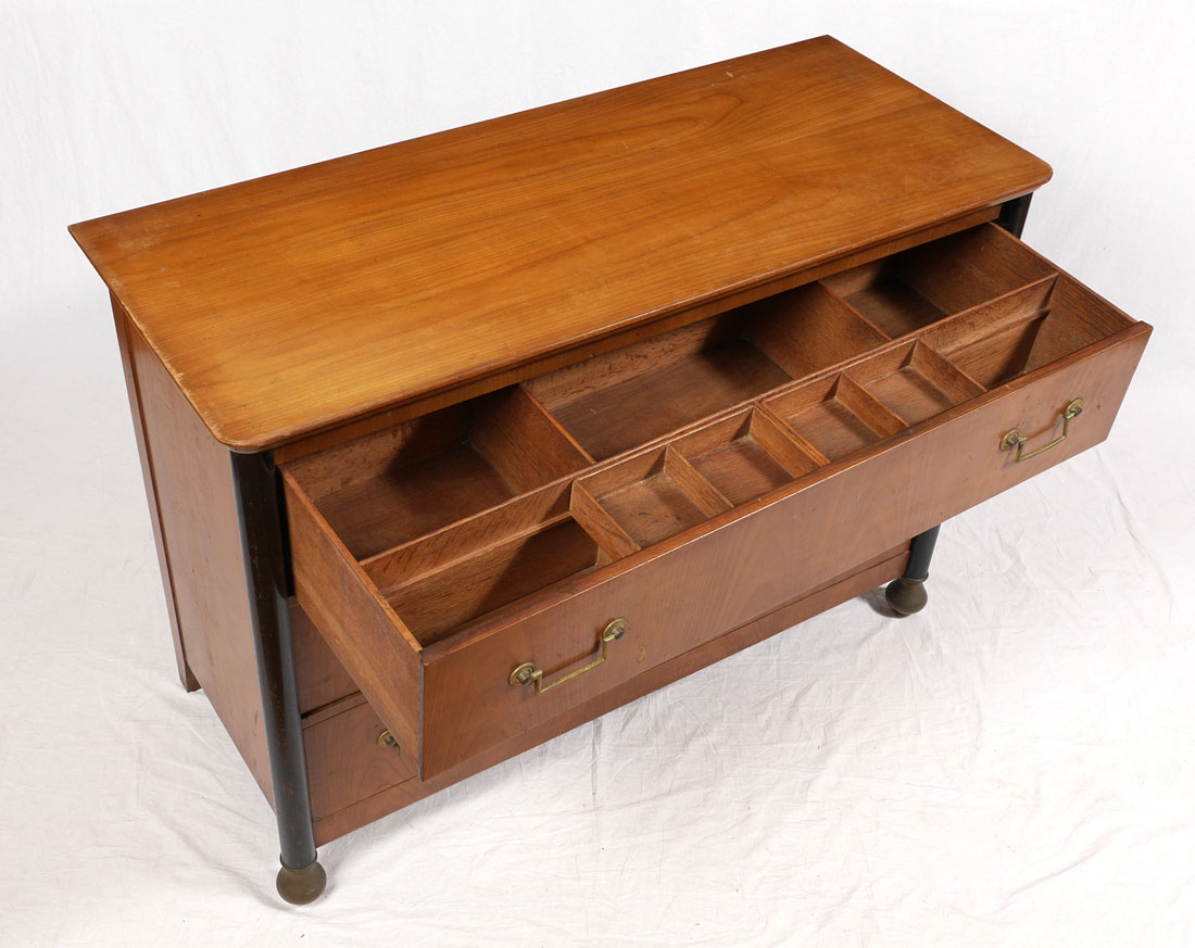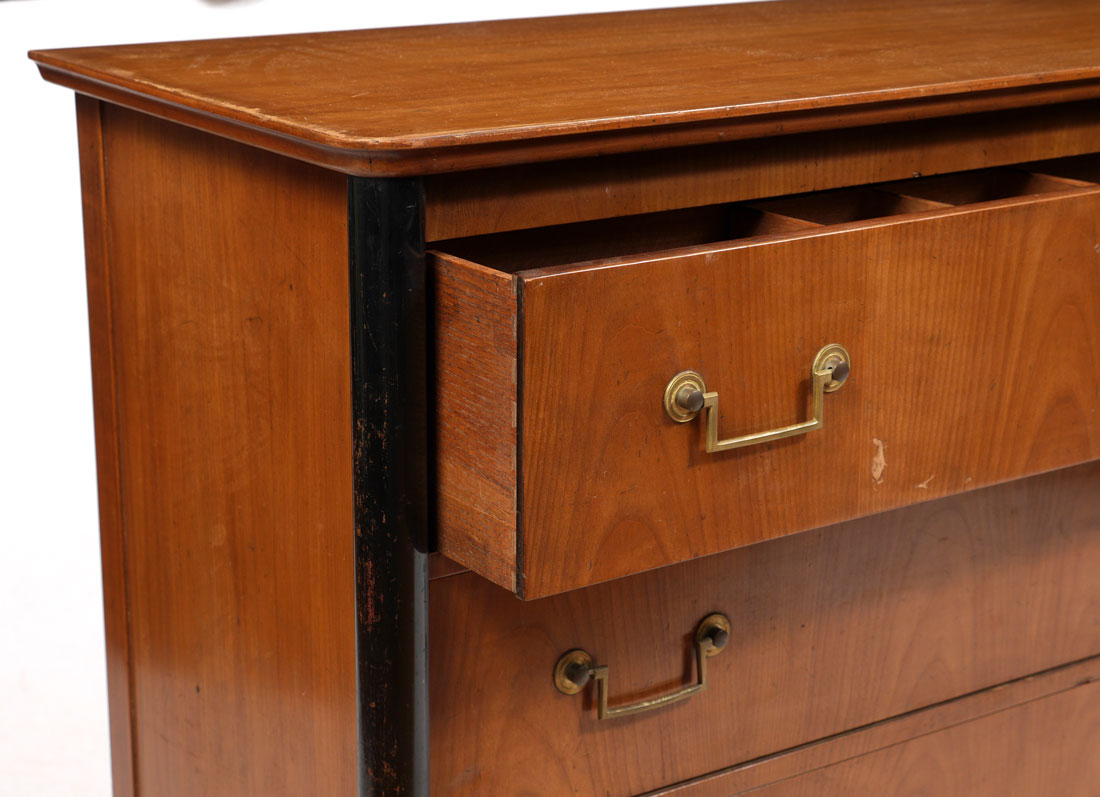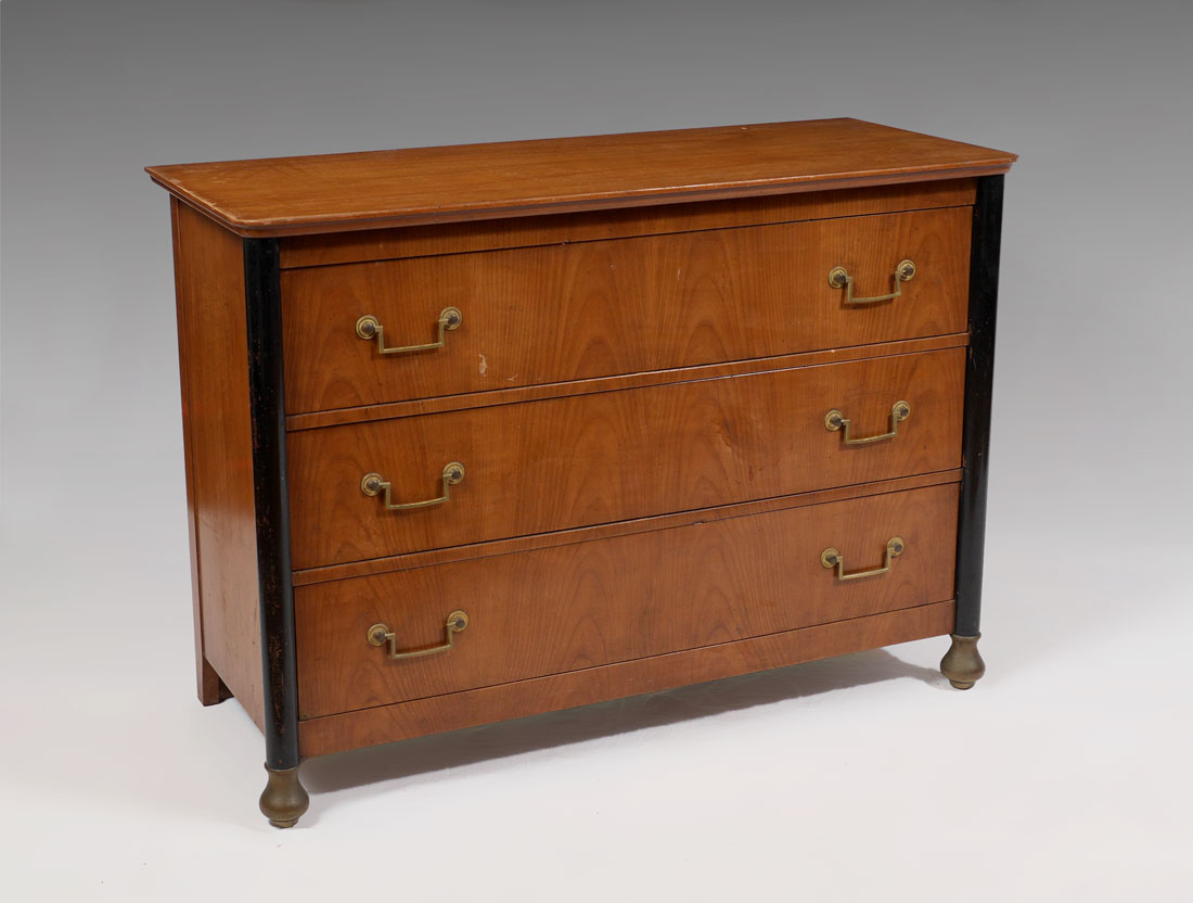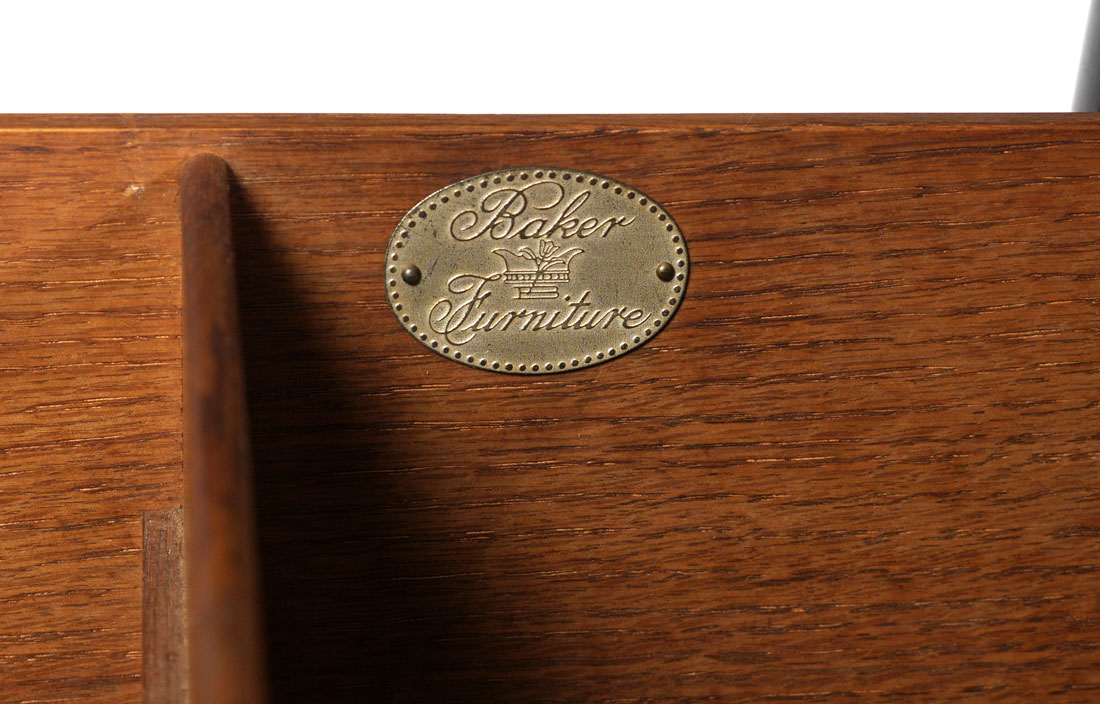 BAKER FURNITURE 3 DRAWER CHEST: 3 full length drawers, top drawer fitted with compartments, marked with Baker Furniture tag, measures 32 1/2'' h. x 46'' x 19''.