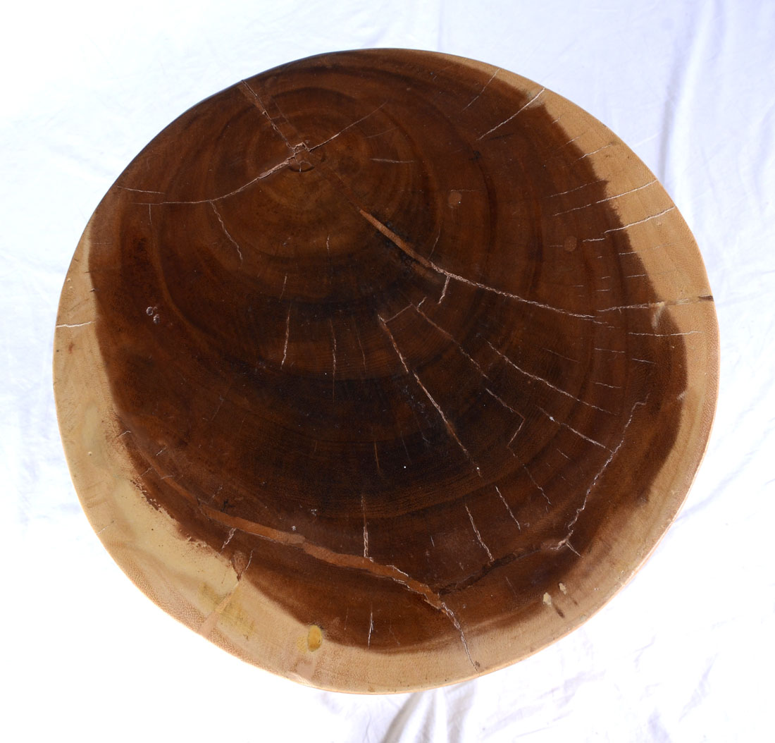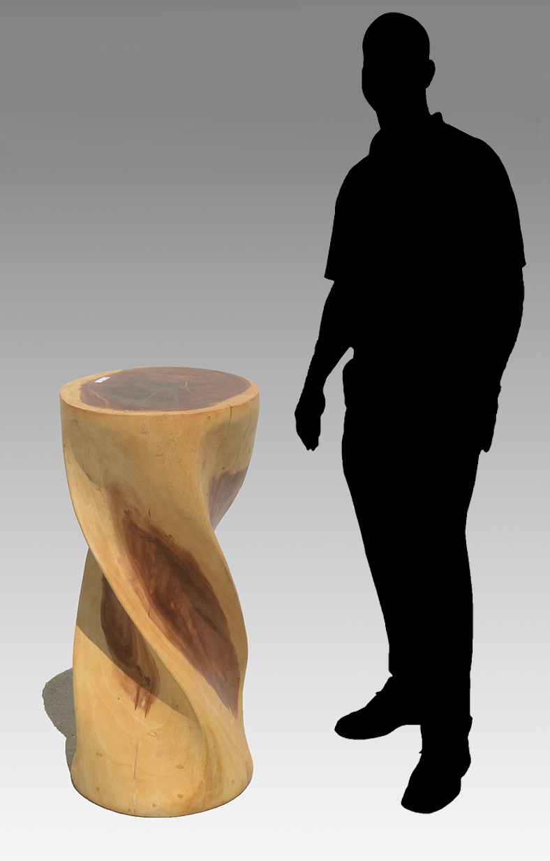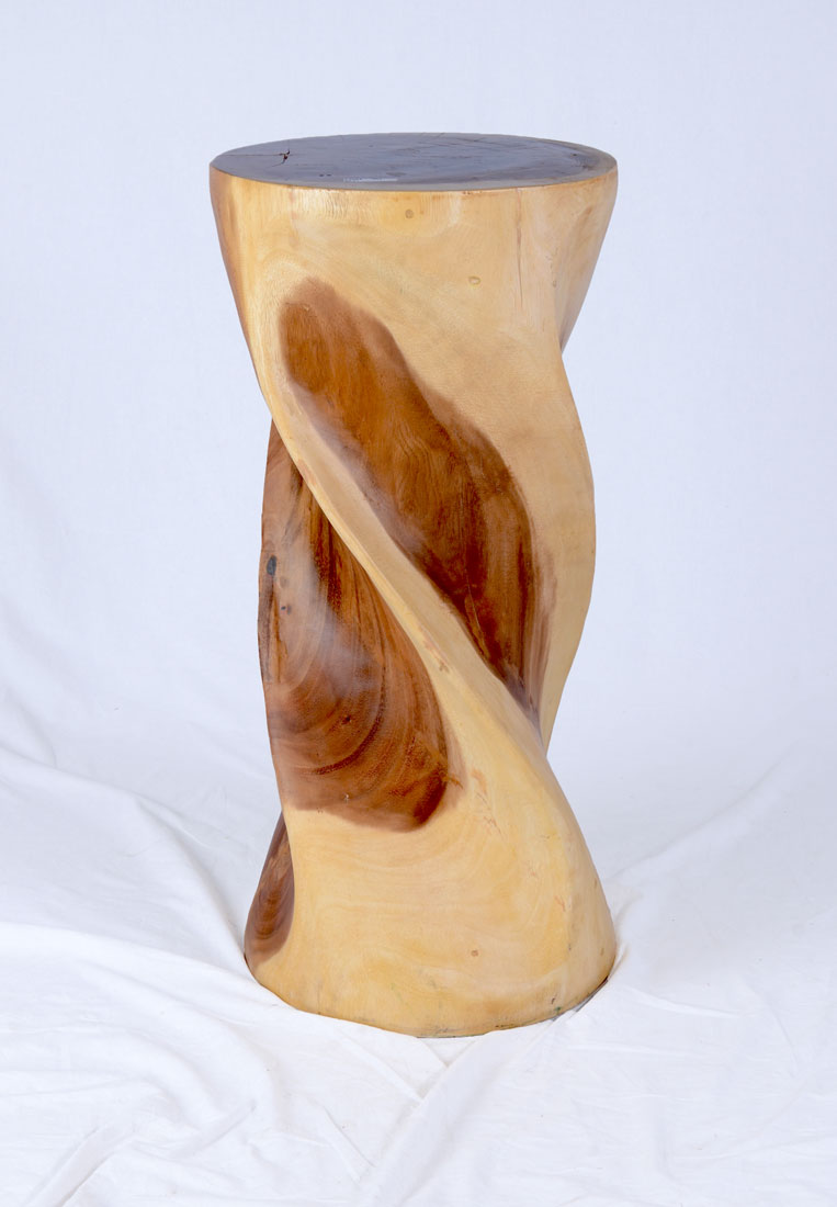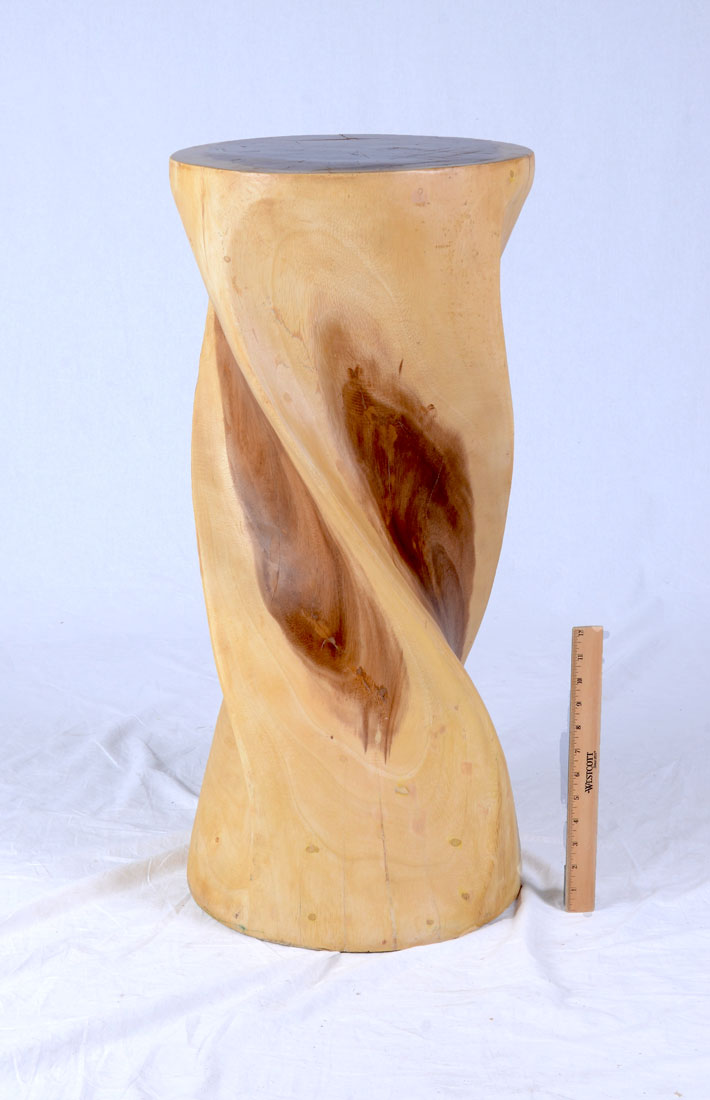 MODERN EXOTIC HARDWOOD CARVED TWIST PEDESTAL: Wood pedestal carved with a triple twist, 30 1/4 h. x 14'' dia.