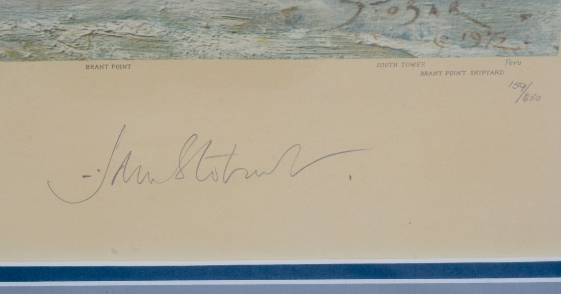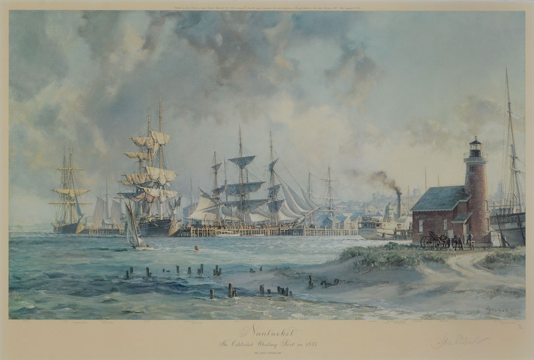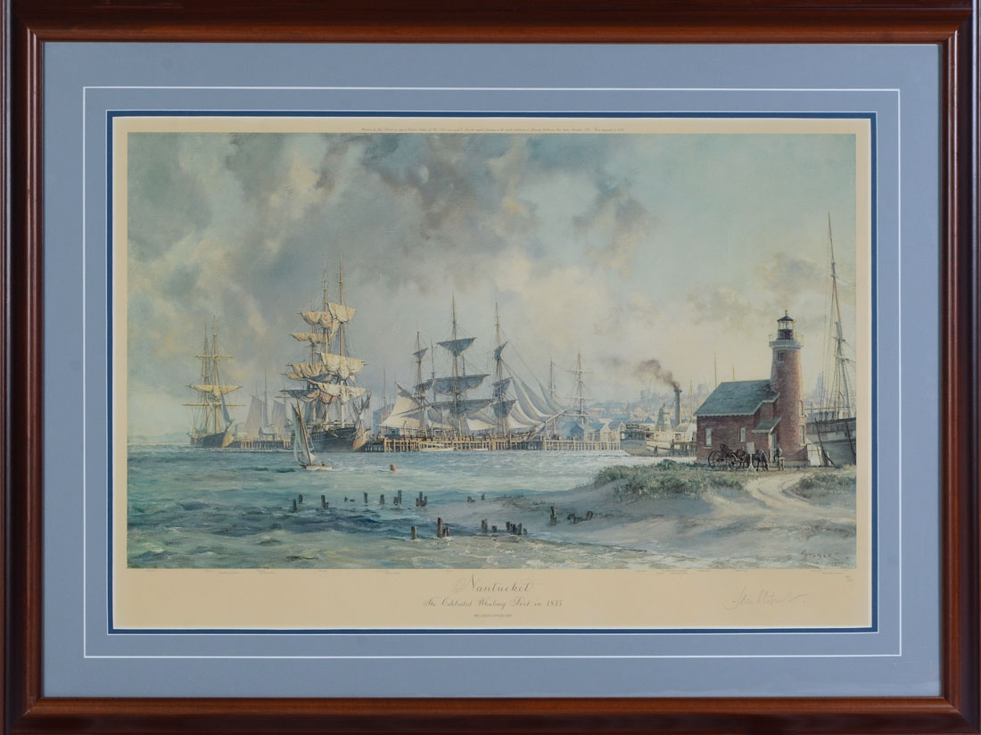 STOBART, John, (American, 1929-): ''Nantucket -The Celebrated Whaling Port in 1835'', Color Lithograph, sight size 23.5'' x 35'', pencil signed lower right, numbered 159/650, framed, 34.5'' x 45.75''