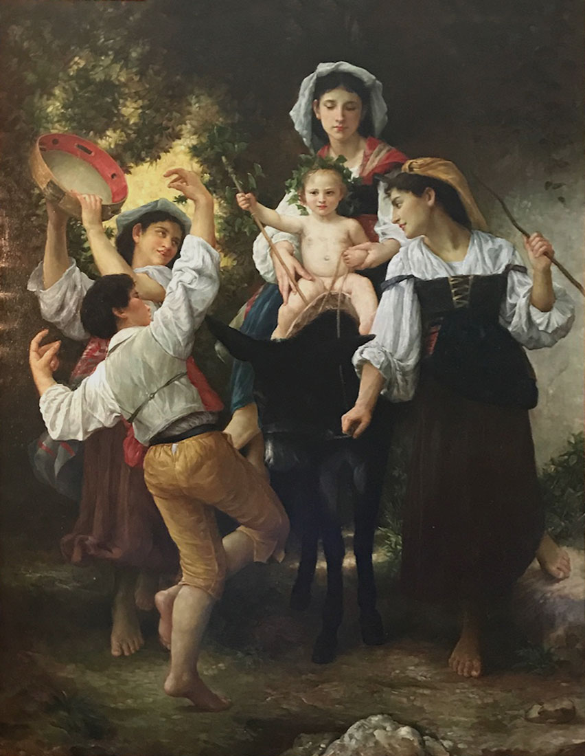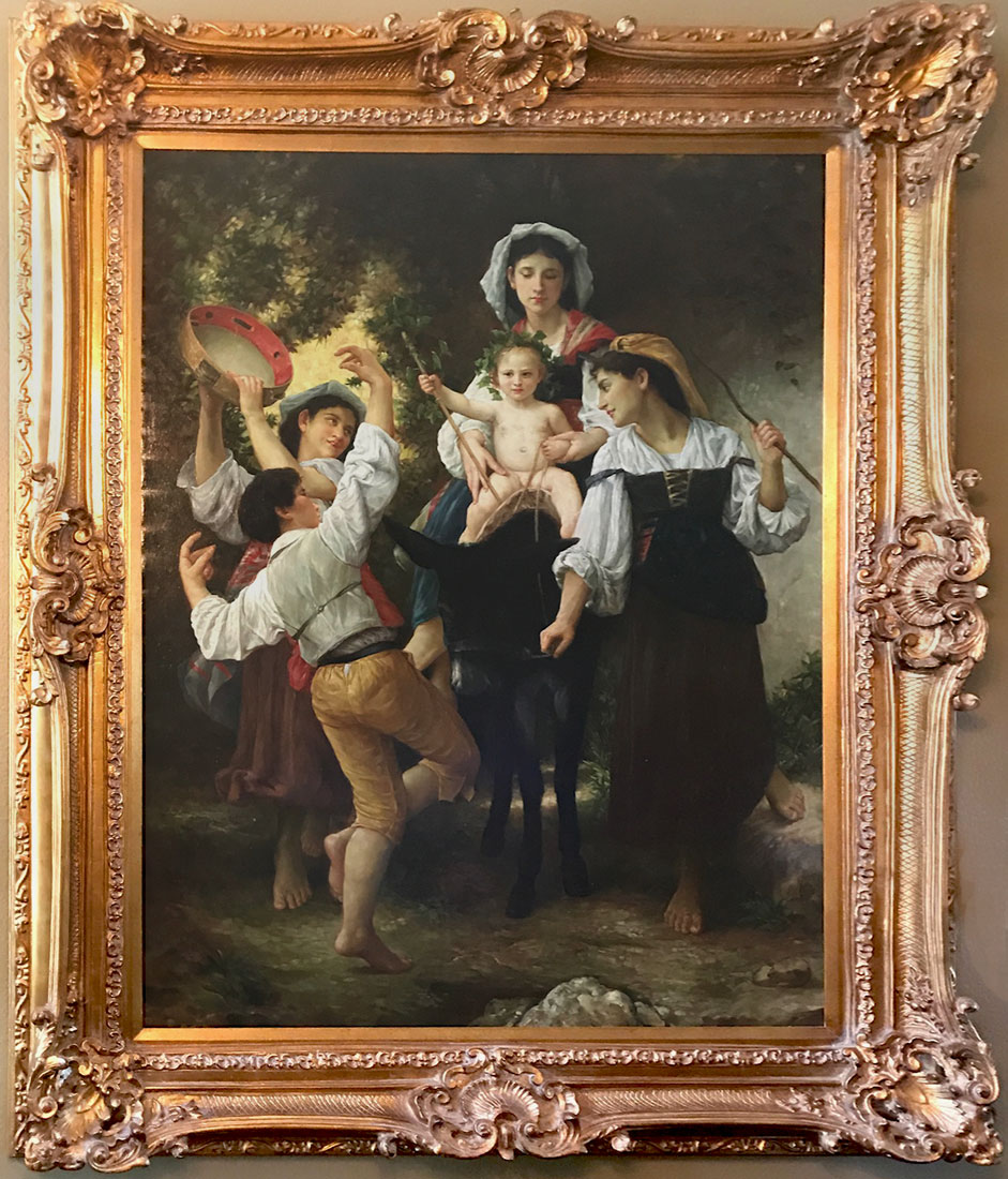 LARGE DONKEY RIDE PAINTING AFTER BOUGUEREAU: 48'' X 36'', framed, 62'' x 49''.