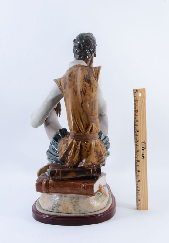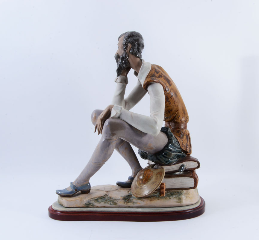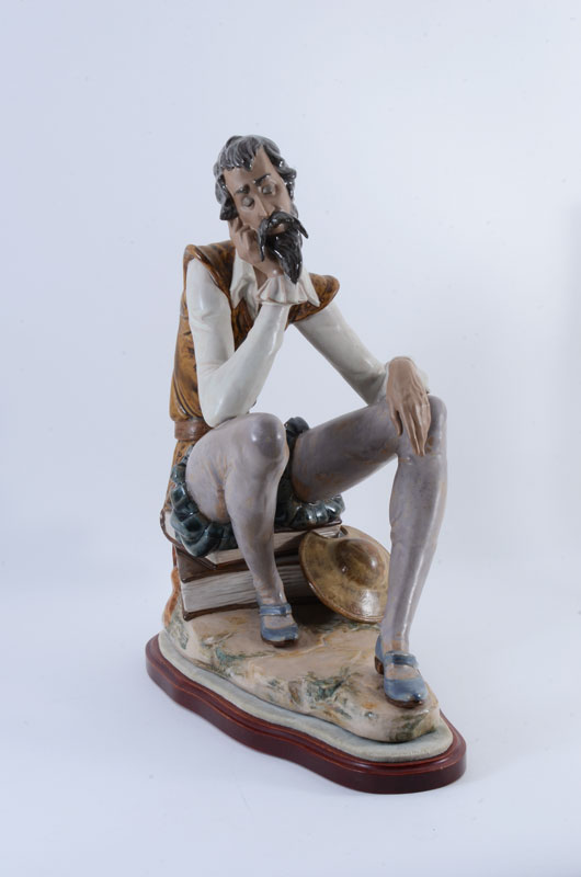 LLADRO DON QUIXOTE DREAMING 2084 PORCELAIN FIGURE: Gris finish Lladro ''Don Quixote Dreaming'', spanish name ''Don Quijote Ensonador'', sculpted by Salvador Debon, issued 1978, retired 1985. Measures 17'' h. x 14 1/2'' x 8 1/2''. Sold with the wood stand, no box.