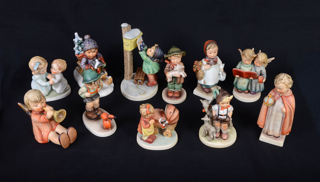 COLLECTION OF 11 GOEBEL HUMMEL FIGURINES: An assembled collection of 11 Hummel figurines, assorted figures and marks. No boxes. Tallest measures 7 3/4'' h.