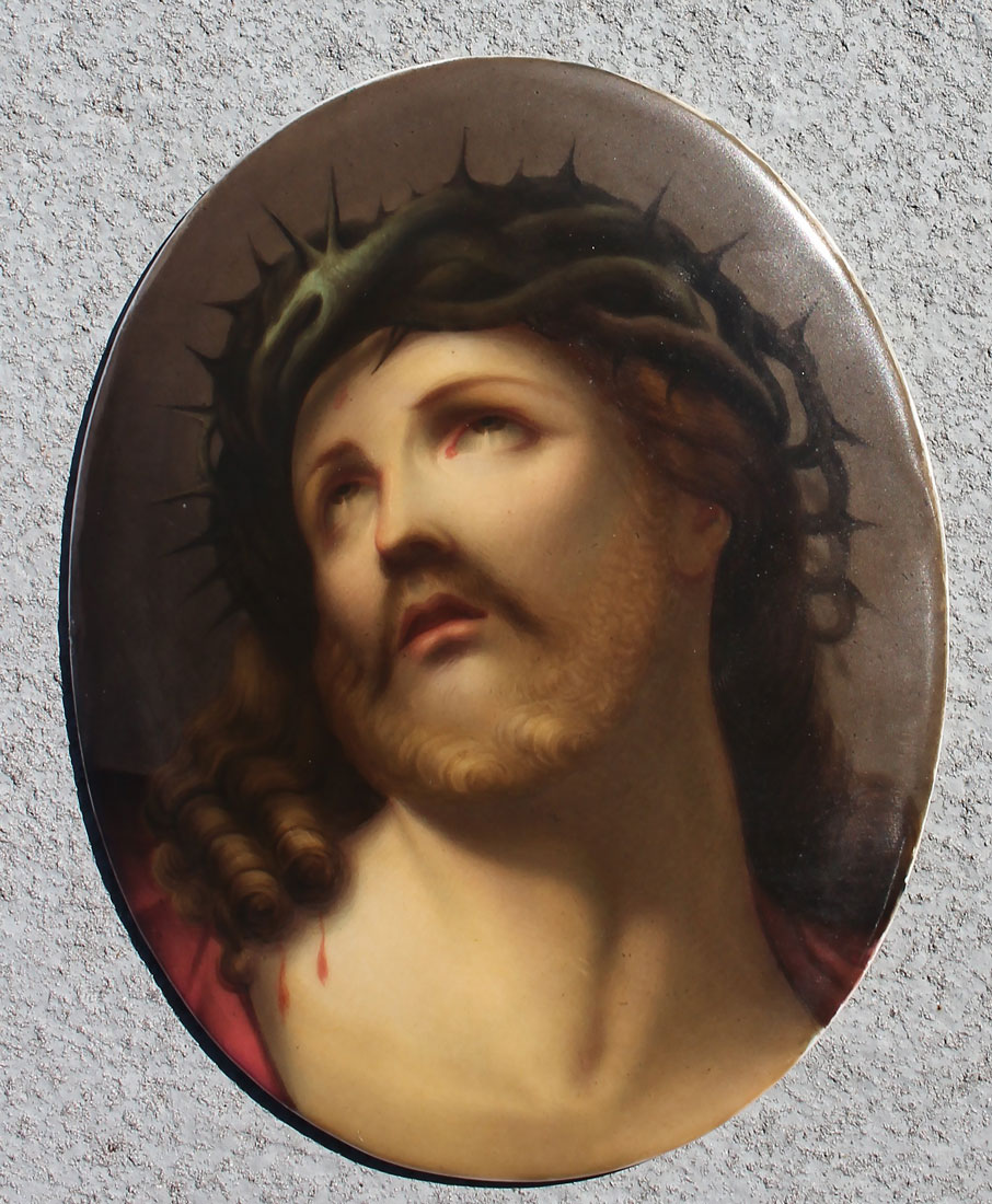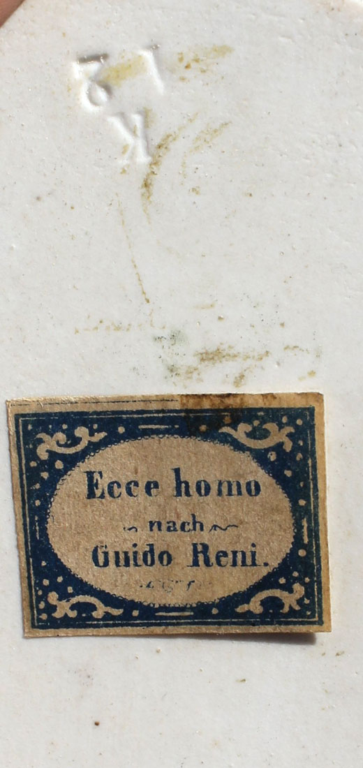 ECCE HOMO PORCELAIN PLAQUE AFTER GUIDO RENI: 5'' X 4'', Label verso, impressed marks.