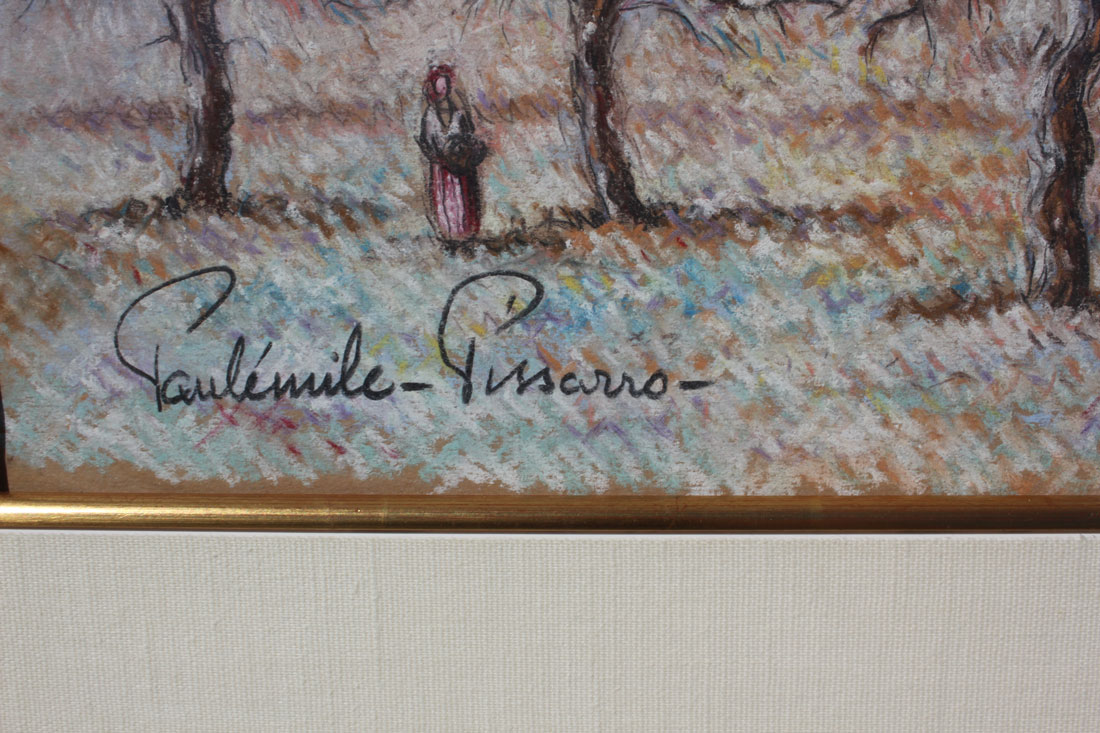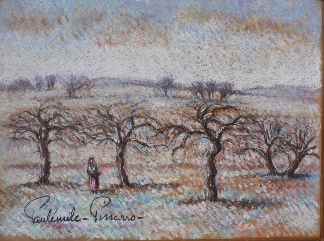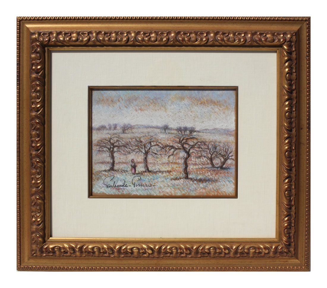 PISSARRO, Paul Emile, (French 1884-1972): ''Arbres En Hiver'' Vineyard Landscape, Pastel, sight size is 9'' x 12'', signed lower left, custom framing is 23'' x 25.50'', certificates of authenticity affixed verso.