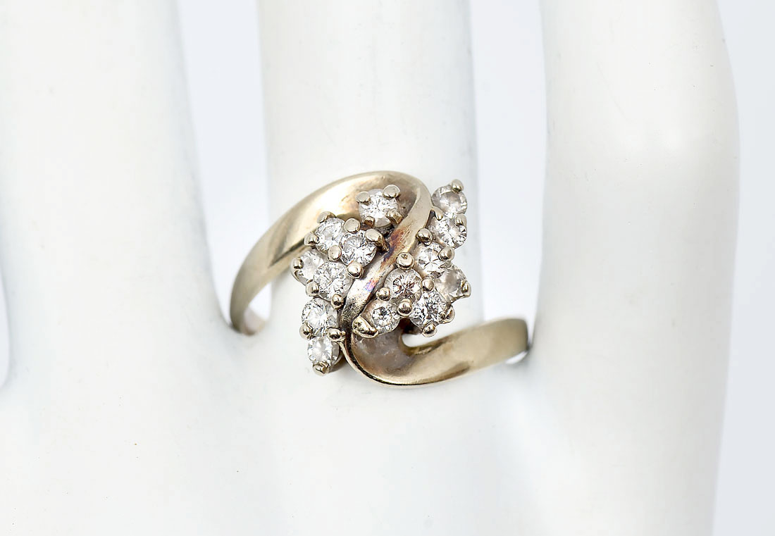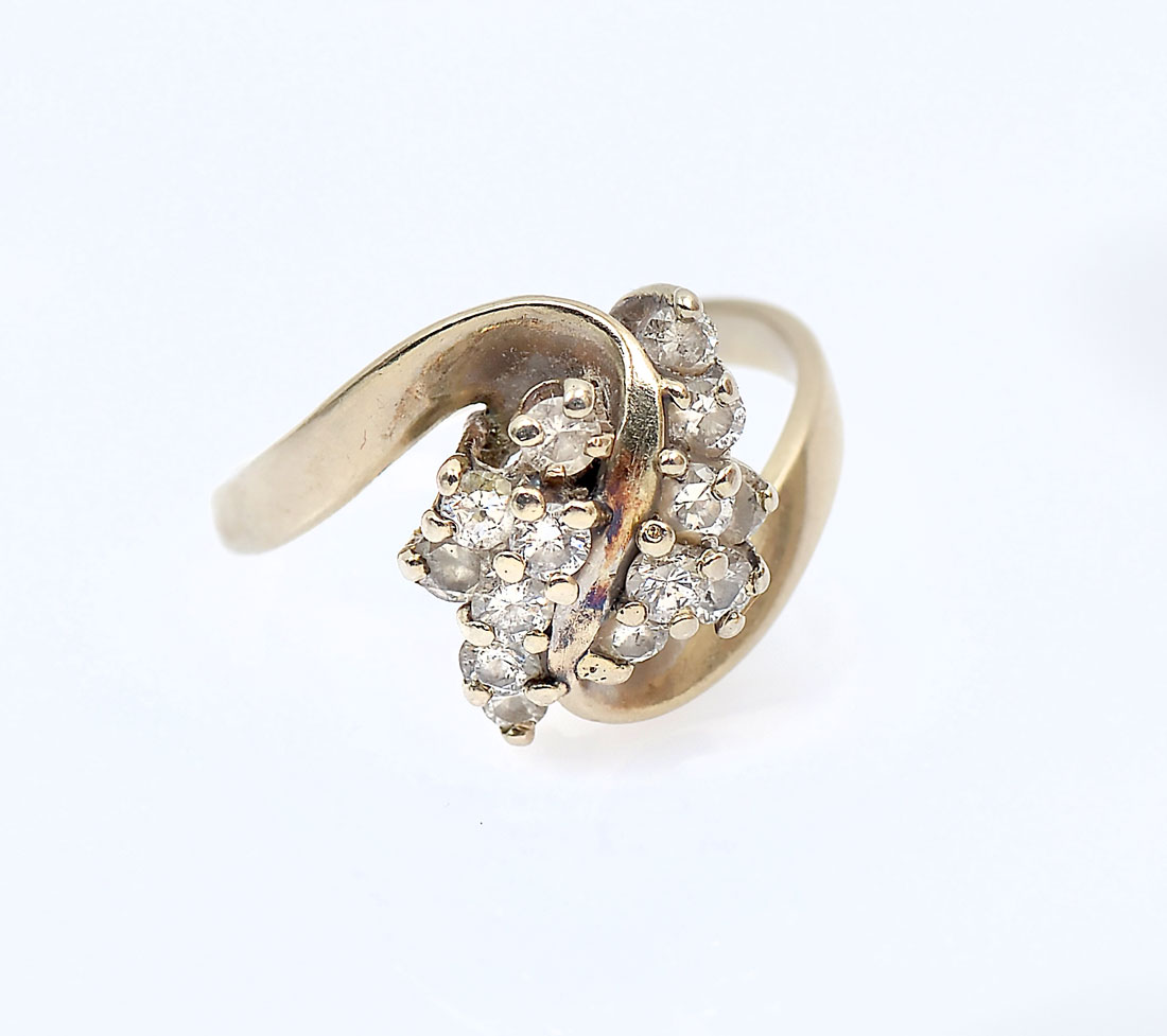 14K 1.00 CTW DIAMOND RING: 14K yellow gold ring contains 14 round full cut diamonds. WEIGHT: 1.00 Ct. Approx. Rated SI-I1 in clarity and H-I in color. The diamonds are prong set. Weight: 5.4 grams. Size: 8.5