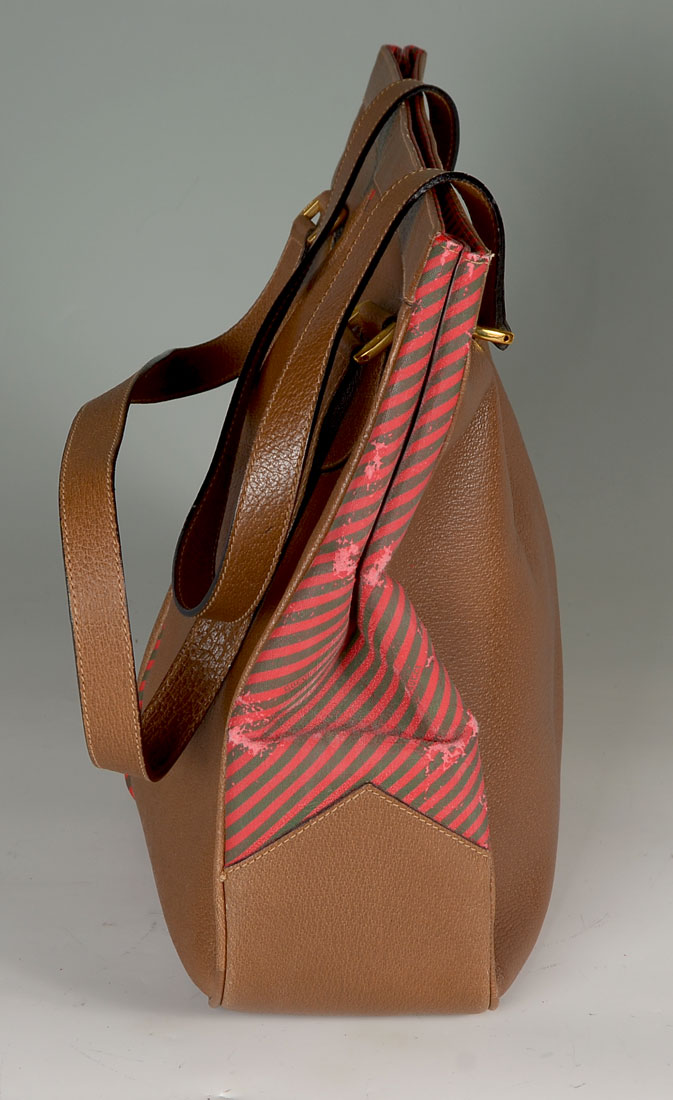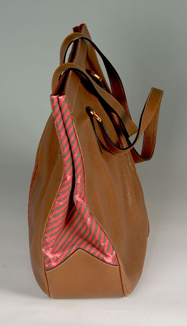 CHOCOLATE LEATHER GUCCI TOTE BAG FROM THE GUCCI ACCESSORY COLLECTION: This chocolate brown leather tote bag features gold hardware and classic Gucci green and red strips. Purchased exclusively at Gucci in Italy. ID #904.02.103 and certification #52103 *****358158A.