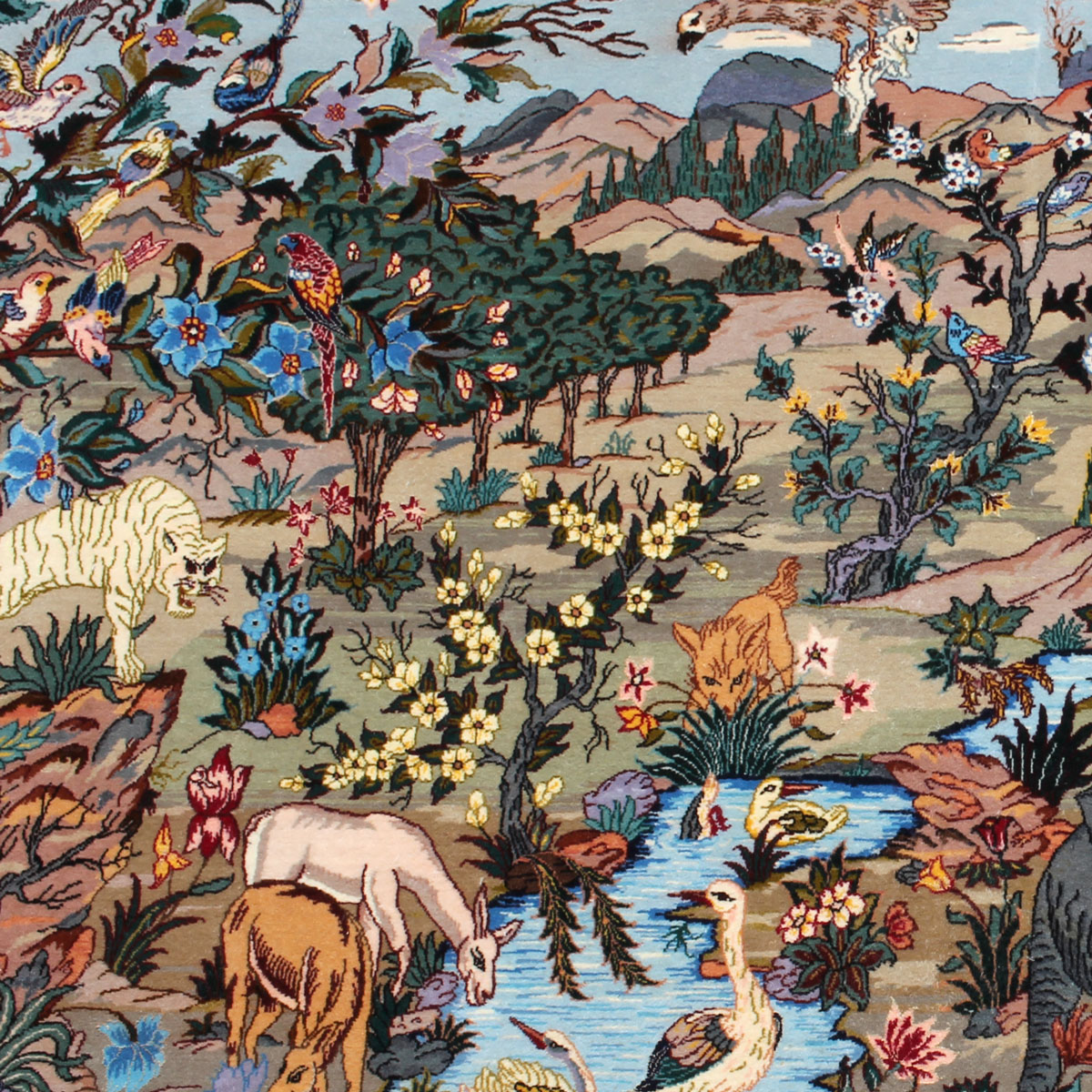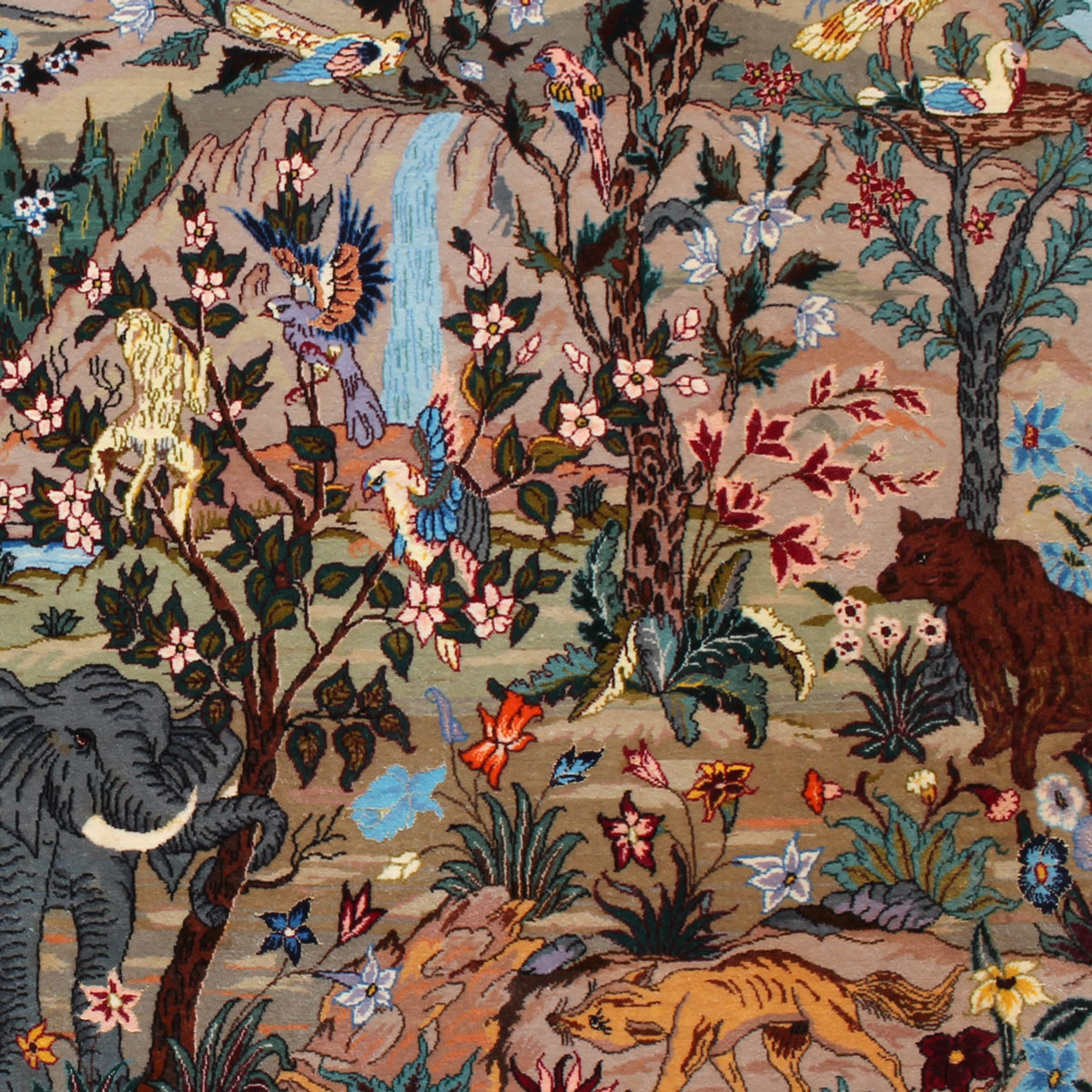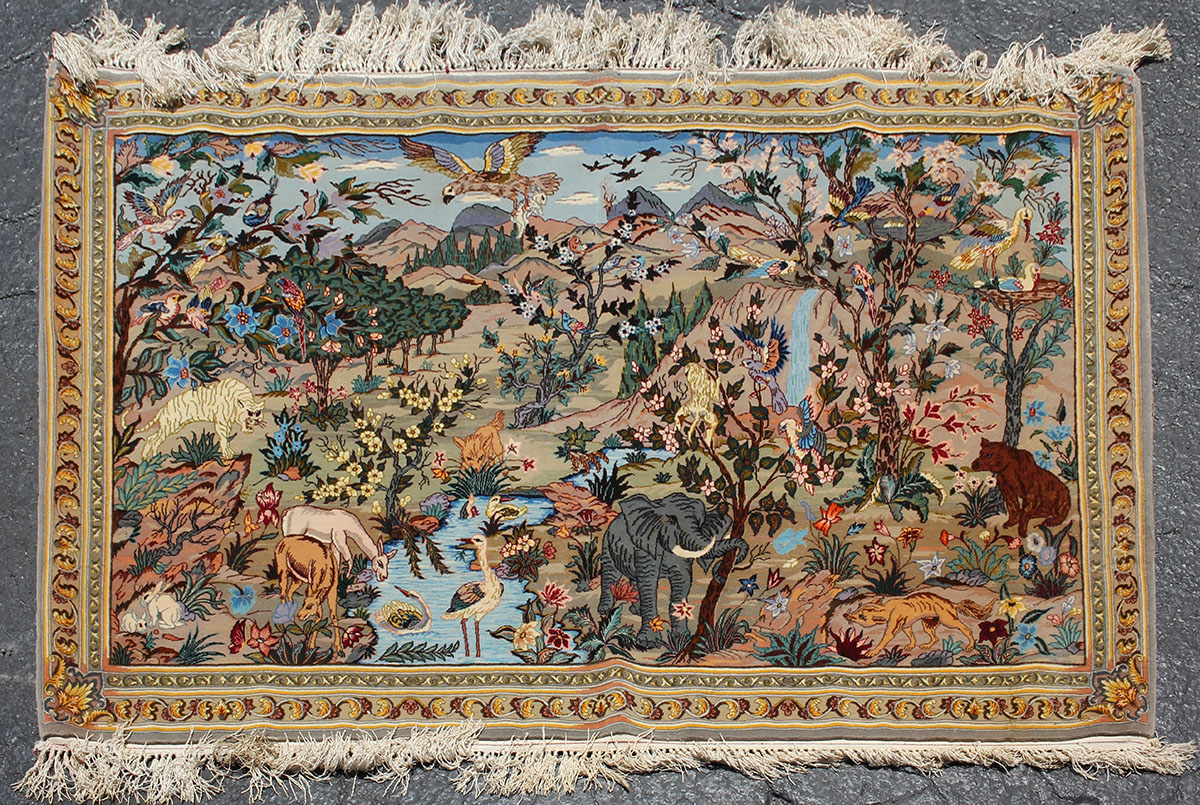 ESTATE PERSIAN PICTORIAL ISFAHAN CARPET: Authentic Isfahan Silk and wool weaving masterpiece, very fine. 5'4'' x 3'8''