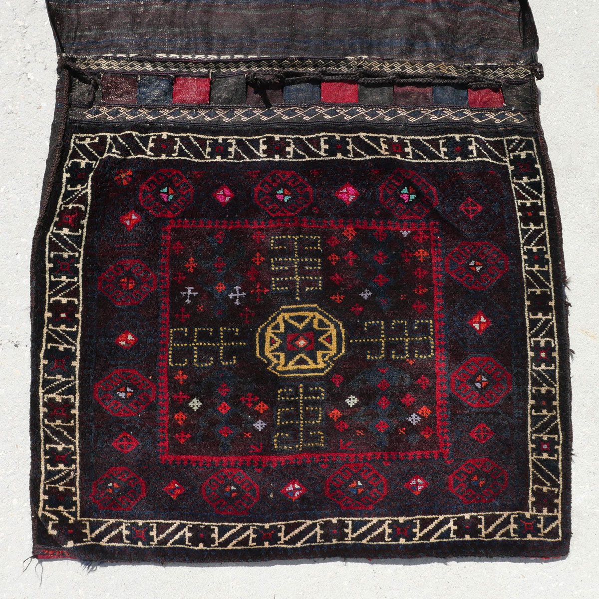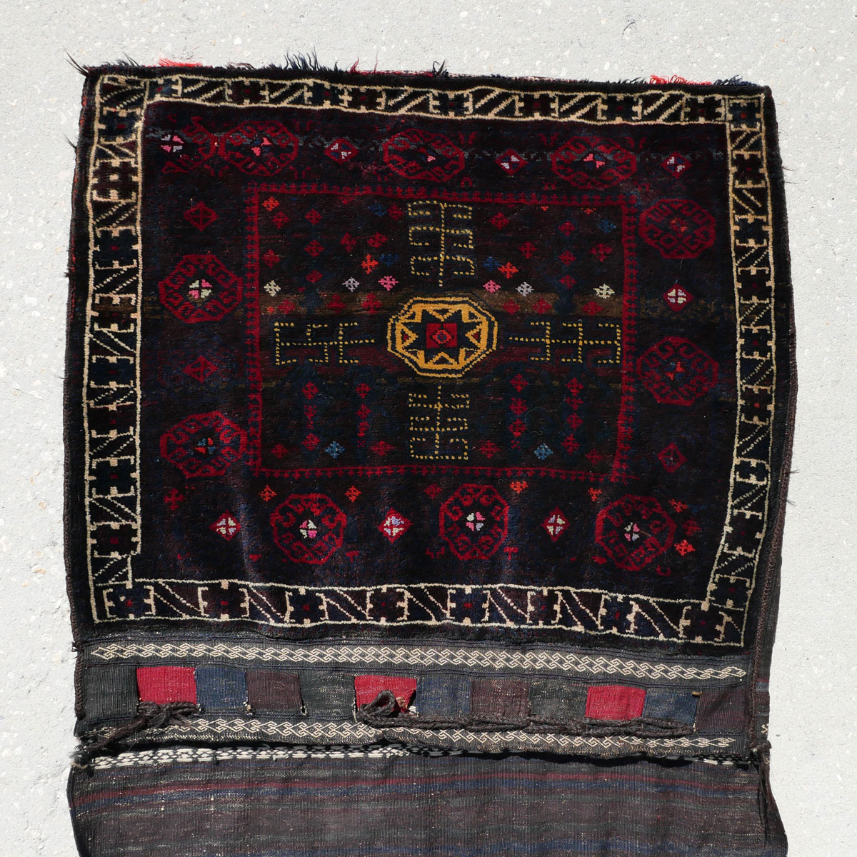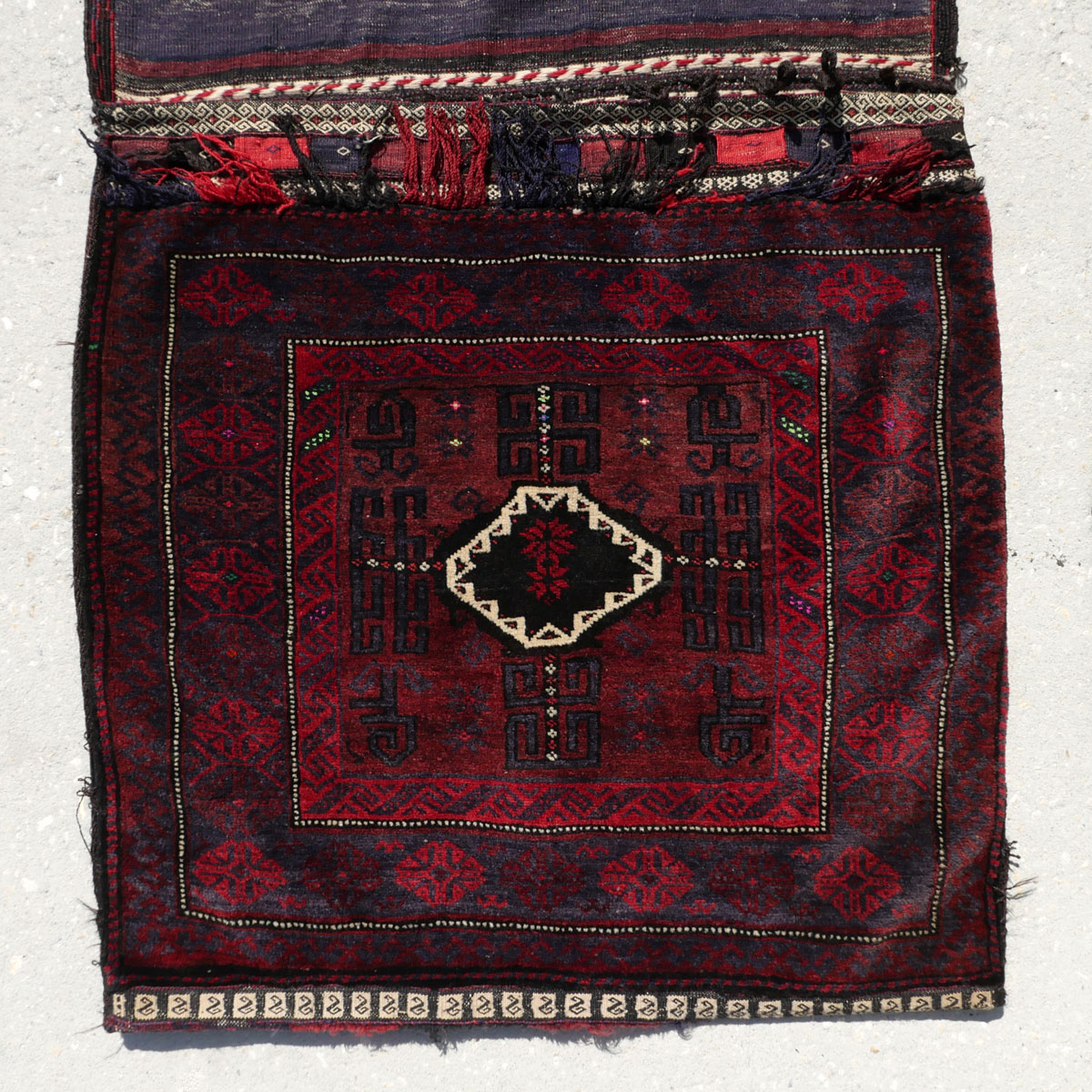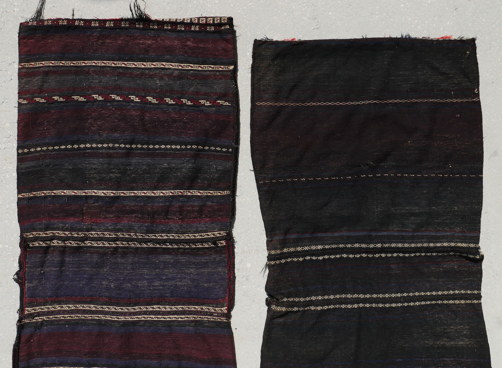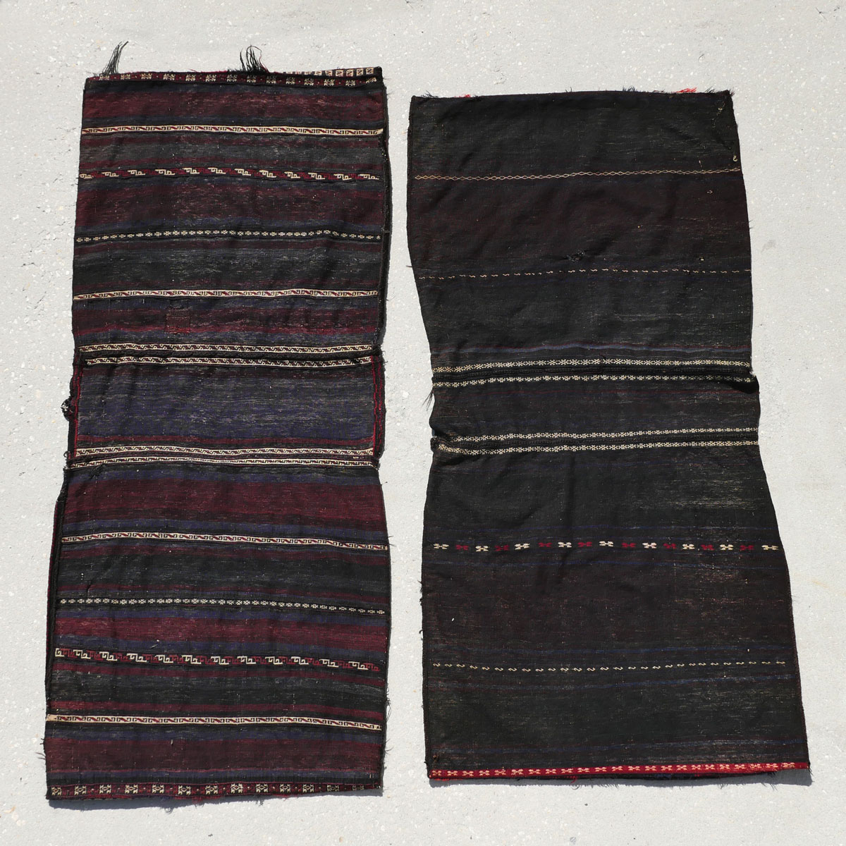 2 PAIR OF COMPLETE PERSIAN HAND KNOTTED WOOL STORAGE/SADDLE BAGS: Complete Persian hand knotted wool storage/saddle bags with pile faces and flat-weave backs. Although used to transport goods on animals and then used for storage in dwellings the makers also made these attractive. Can be used as wall hangings, pillows, etc.