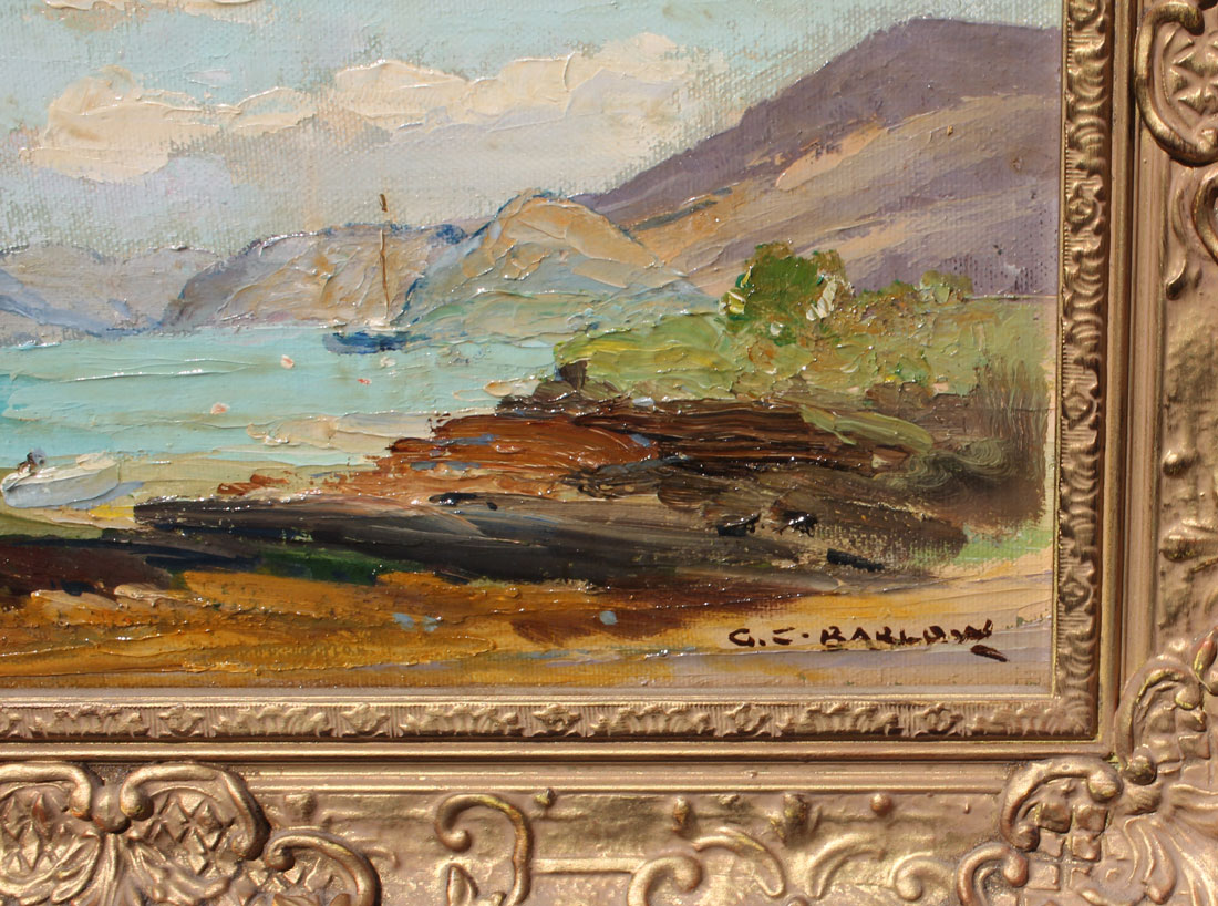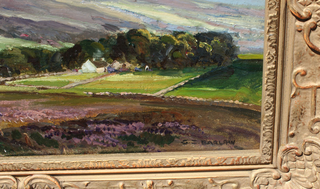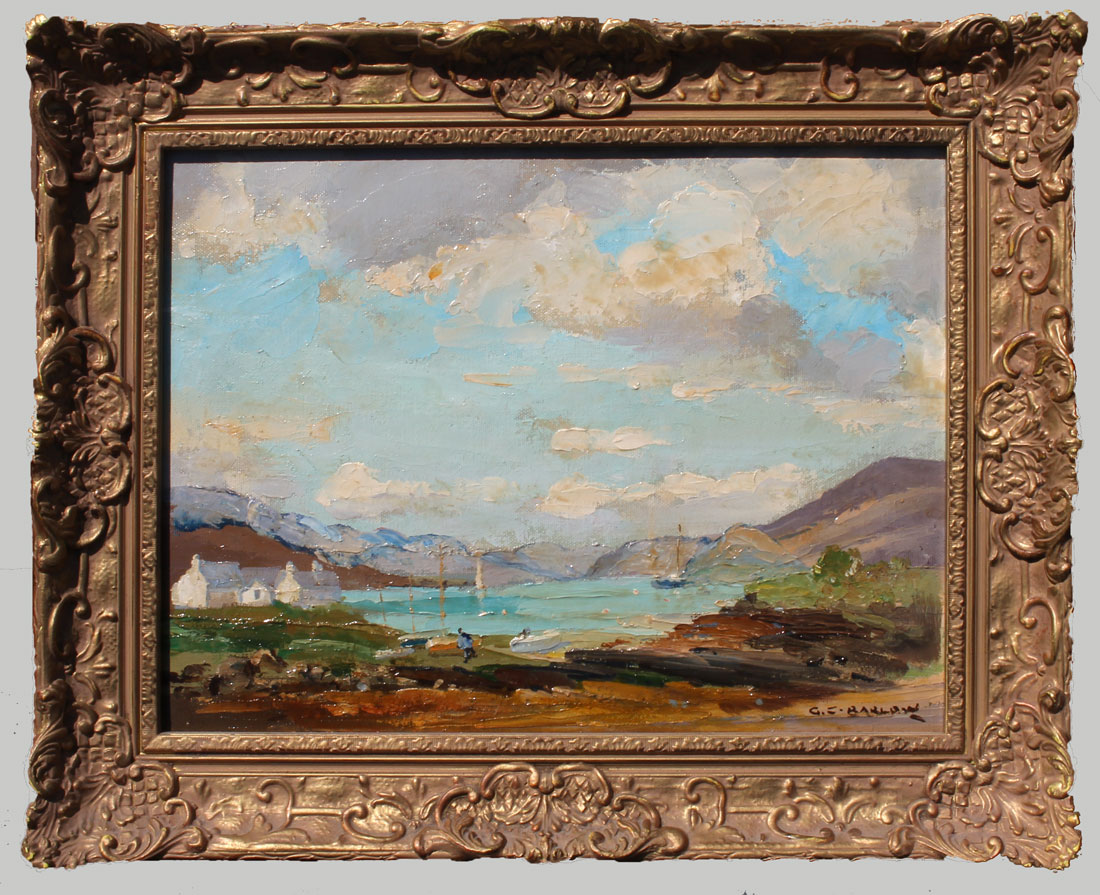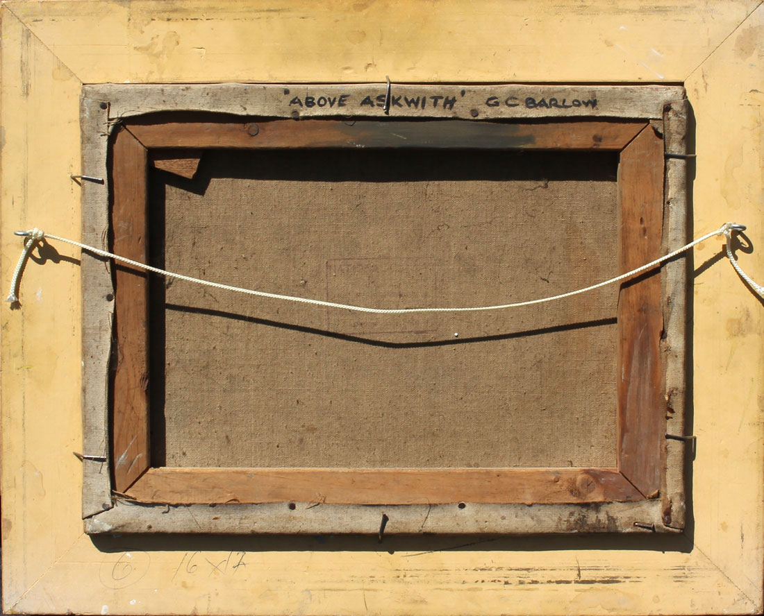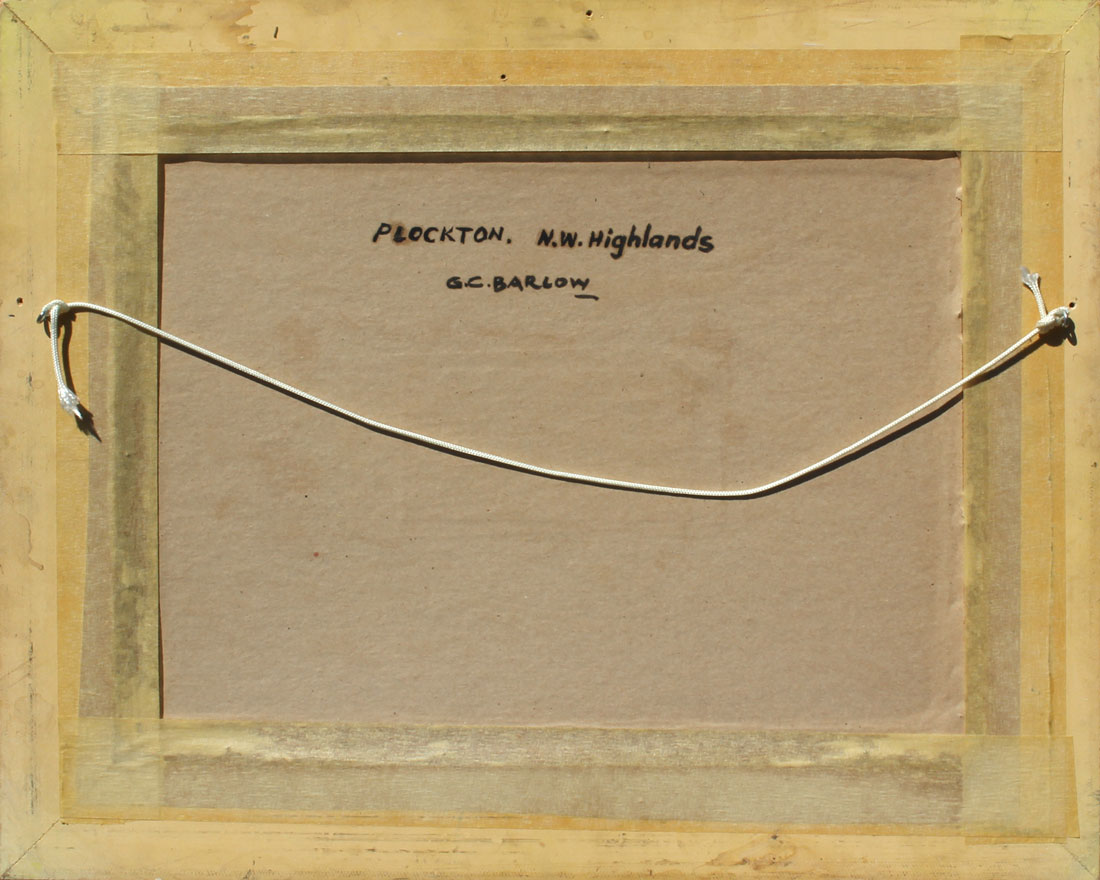 BARLOW, Gordon Clifford, (United Kingdom, 1916-2005): 2 pc lot to include; 1) ''Above Askwith'', Oil/Canvas, 12'' x 16'', signed lower right, titled and signed verso, framed, 17'' x 21''. 2) ''Plockton, N.W. Highlands'', Oil/Canvasboard, 16'' x 20'', signed lower right, titled and signed verso, framed, 17'' x 21''.