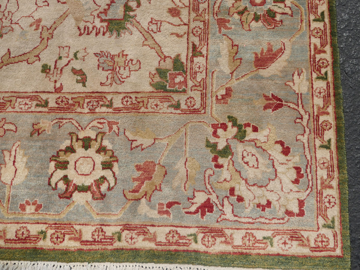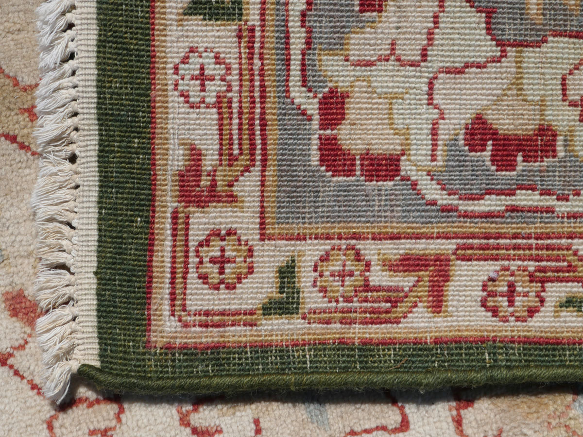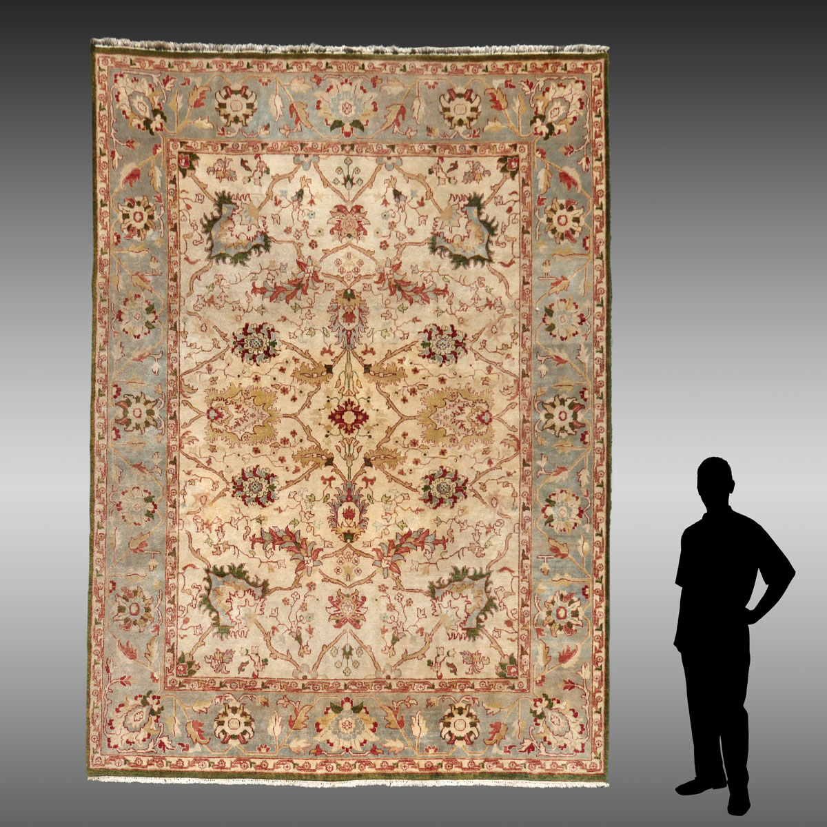 ESTATE ANTIQUE SERAPE DESIGN CARPET: Beautiful handmade oriental carpet with ivory field. 9' x 11' 11''. Ca 1950, India.
