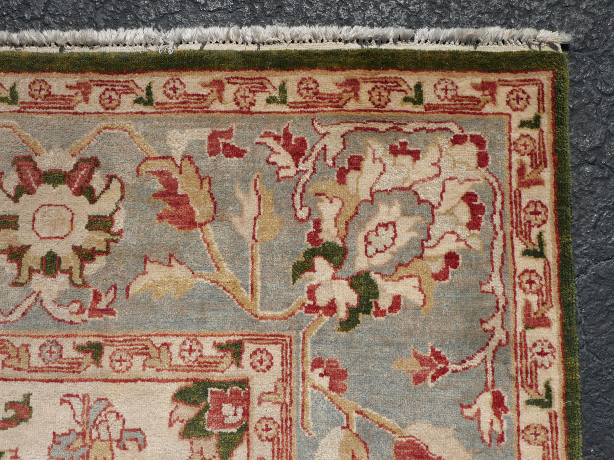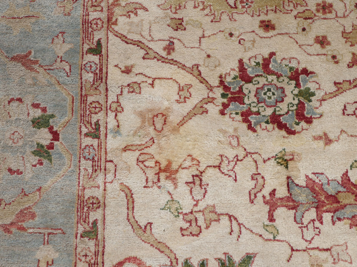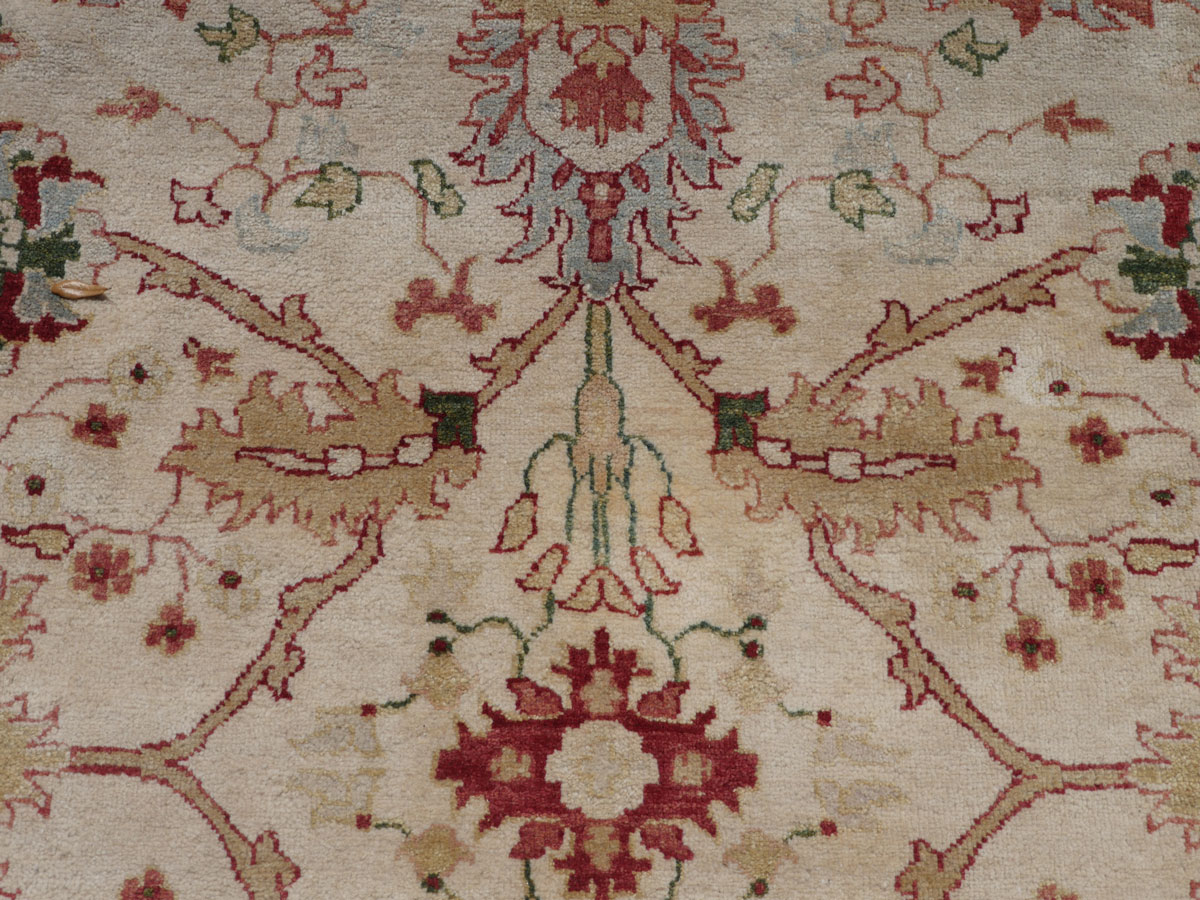 ESTATE ANTIQUE SERAPE DESIGN CARPET: Beautiful handmade oriental carpet with ivory field. 9' x 11' 11''. Ca 1950, India.