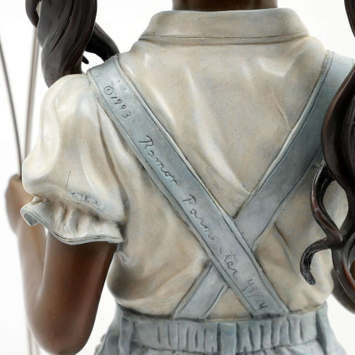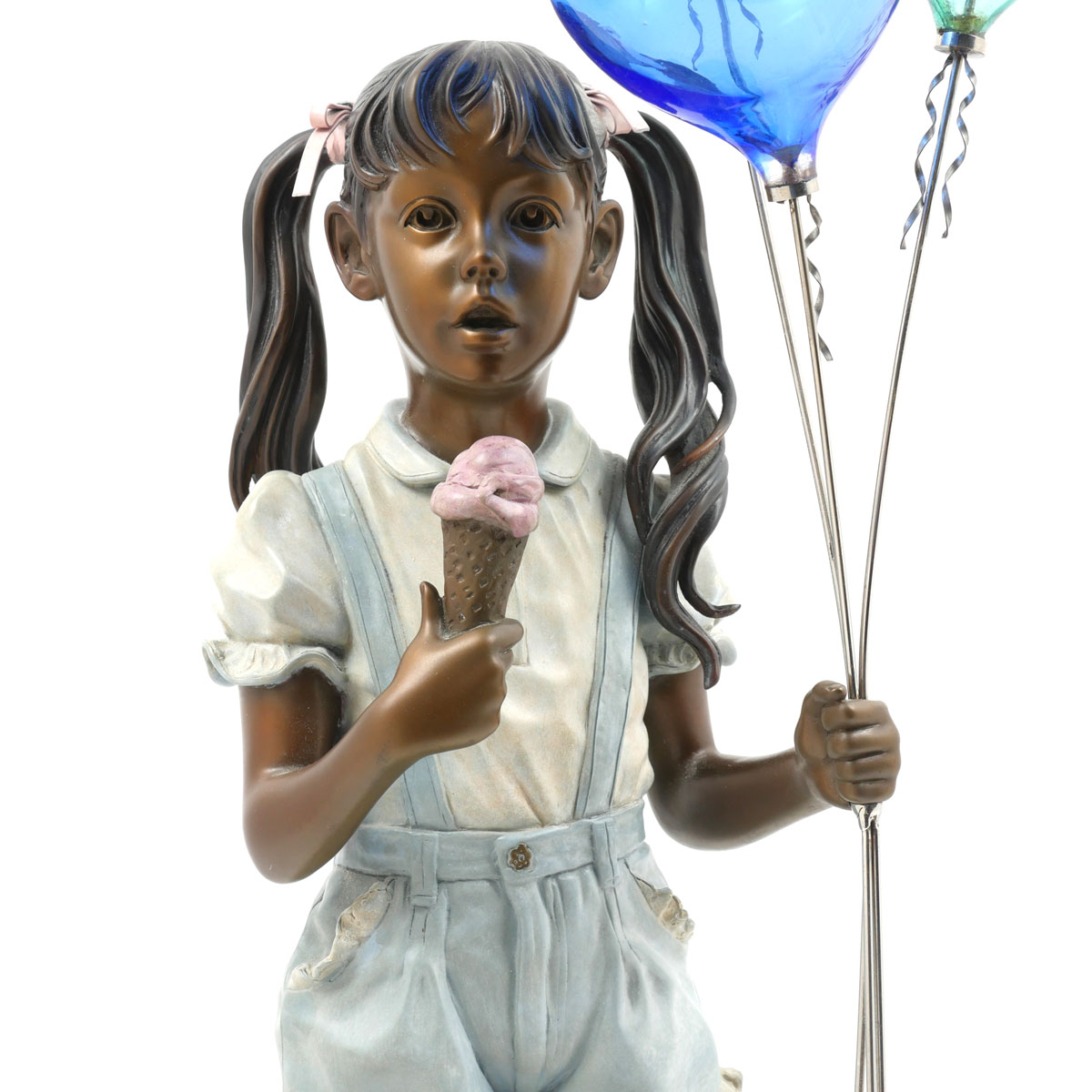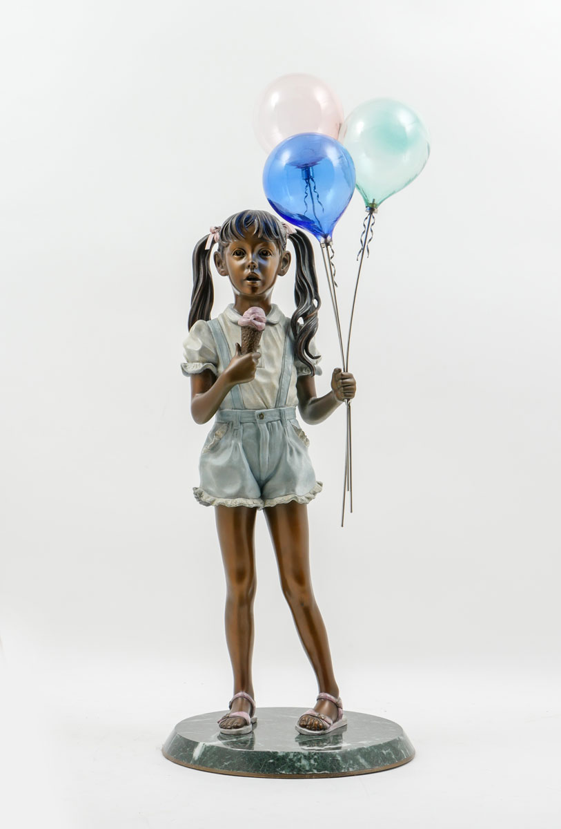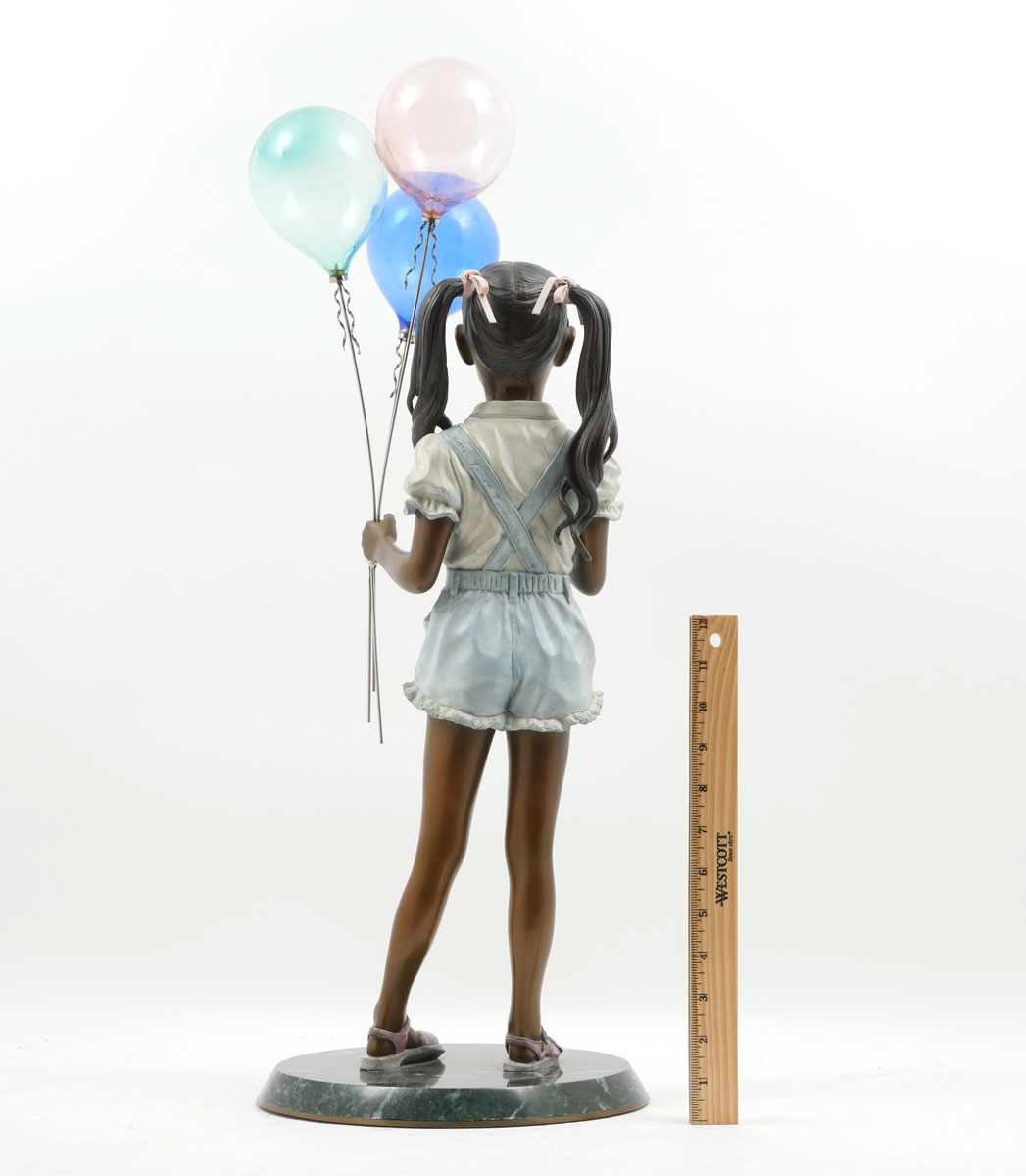 PARMENTER, Ramon, (American, 1954-): Girl Holding Balloons, Bronze and Glass, 25.75'' in height, signed and dated 1983, numbered 43 of 94, affixed to a green marble plinth.