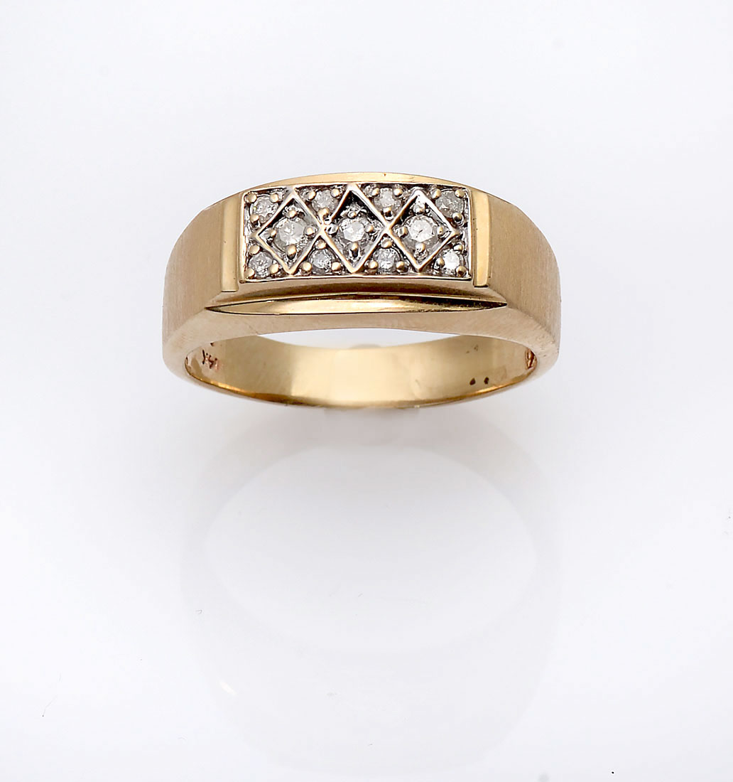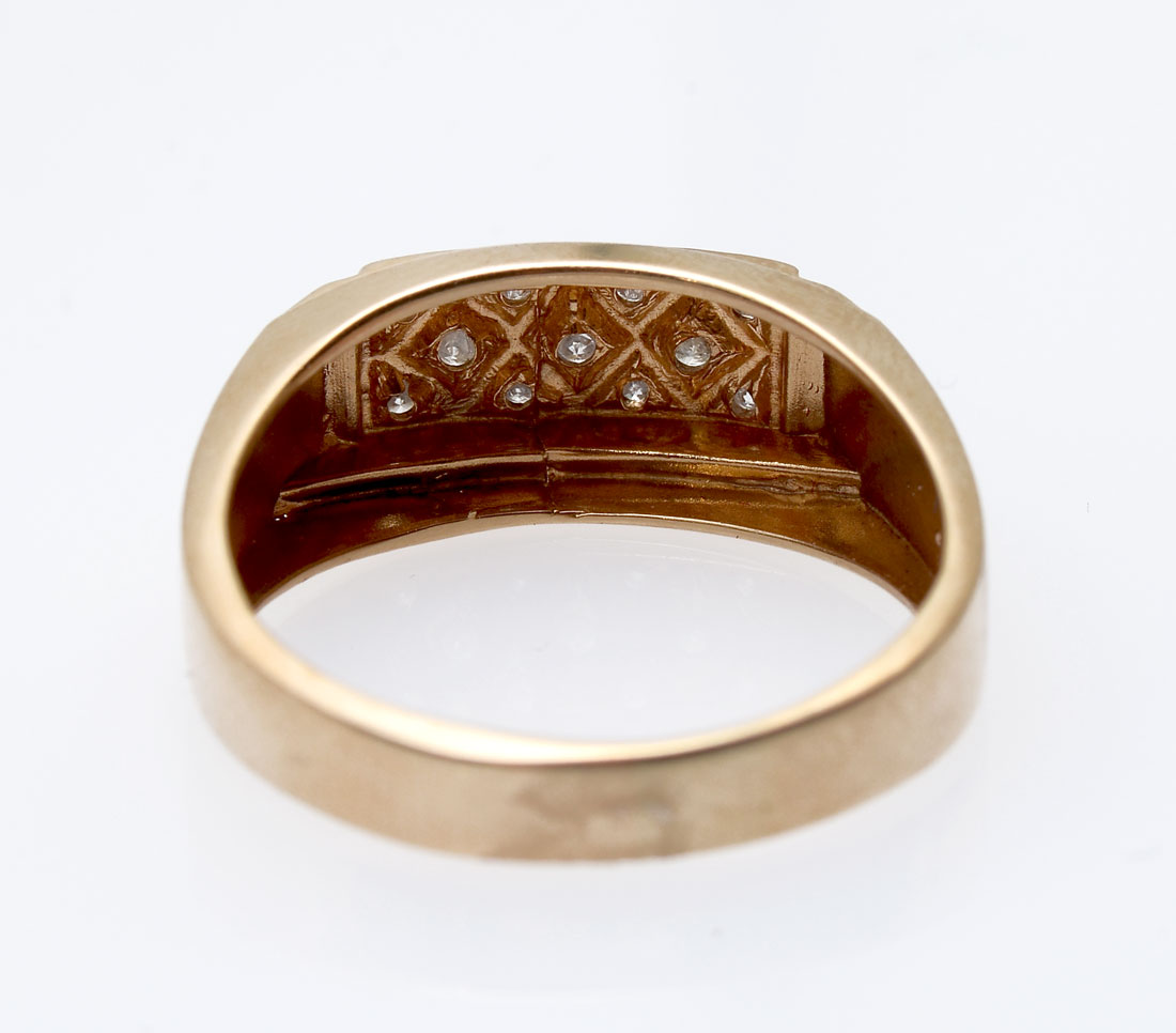 14K .25 CTW DIAMOND RING: 14K yellow gold ring contains 11 round full cut diamonds. WEIGHT: .25 Ct. Approx. Rated I1-I2 in clarity and I-J in color. The diamonds are prong set. Weight: 5.4 grams. Size: 11.5