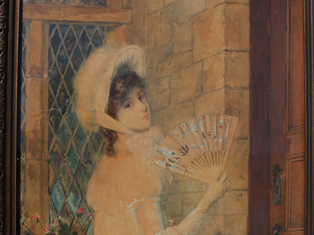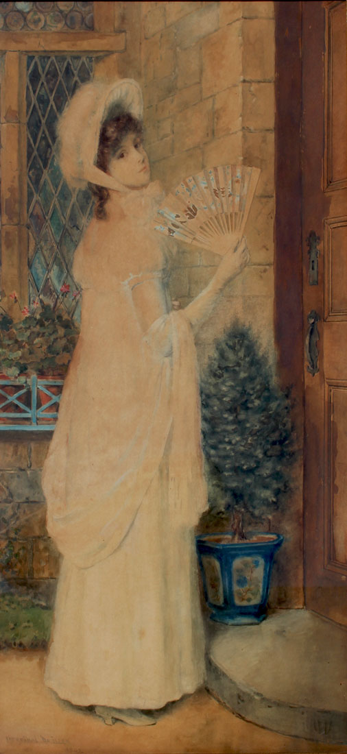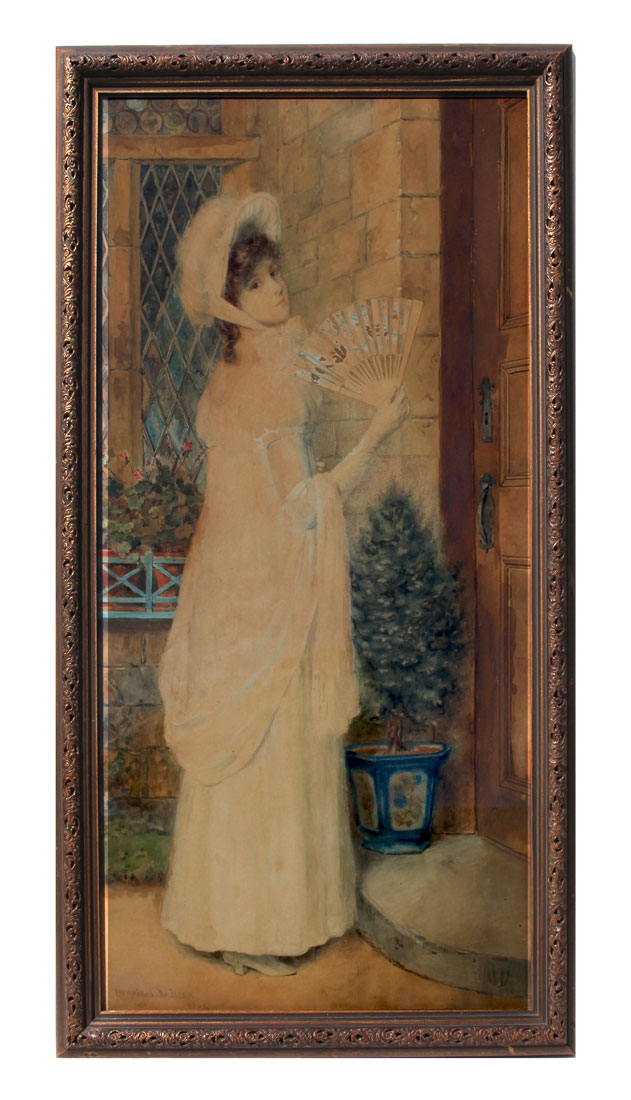 DE LUCE, Percival, (American, 1847-1914): Young Beauty with a Fan, Watercolor, sight size 27.5 x 14'', signed lower left, framed, 31'' x 17''.