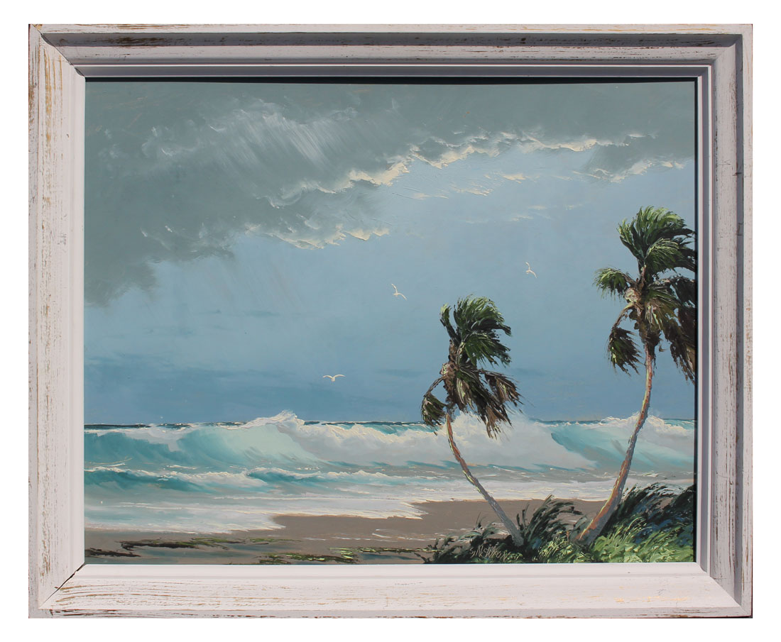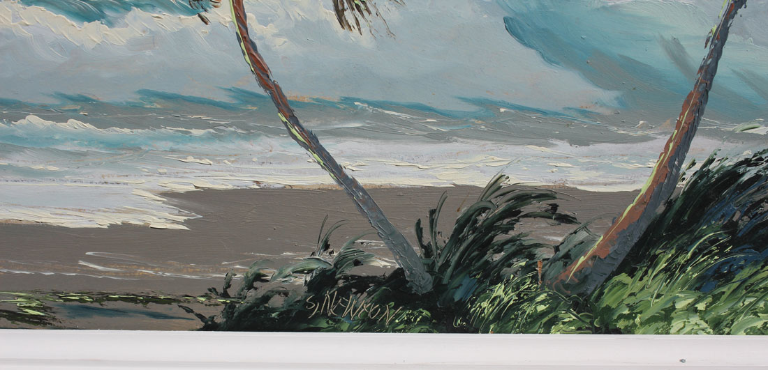 NEWTON, Sam (American,1948-): Florida Highwaymen Beach Palms Painting, Oil/Masonite, 24'' x 30'', signed lower right and framed, 27.5'' x 33.5''.