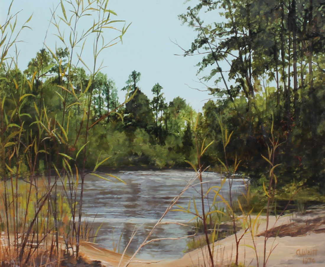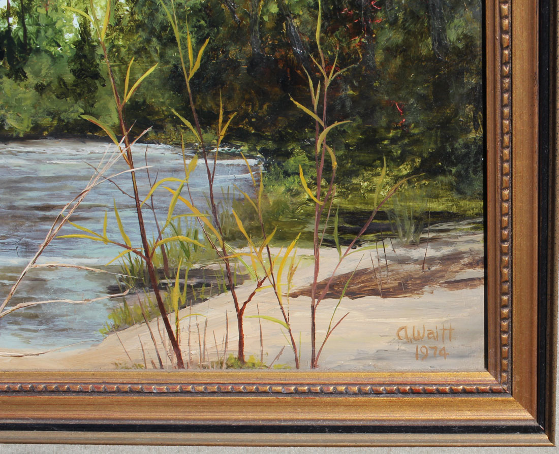 WAITT, Alden Henry, (American, 1892-1981): ''Upatoi Creek at Flood Time'' (Fort Benning Georgia), Oil/Masonite, 12'' x 16'', signed lower right and dated 1974, signed, titled and dated verso, framed 23'' x 27''.