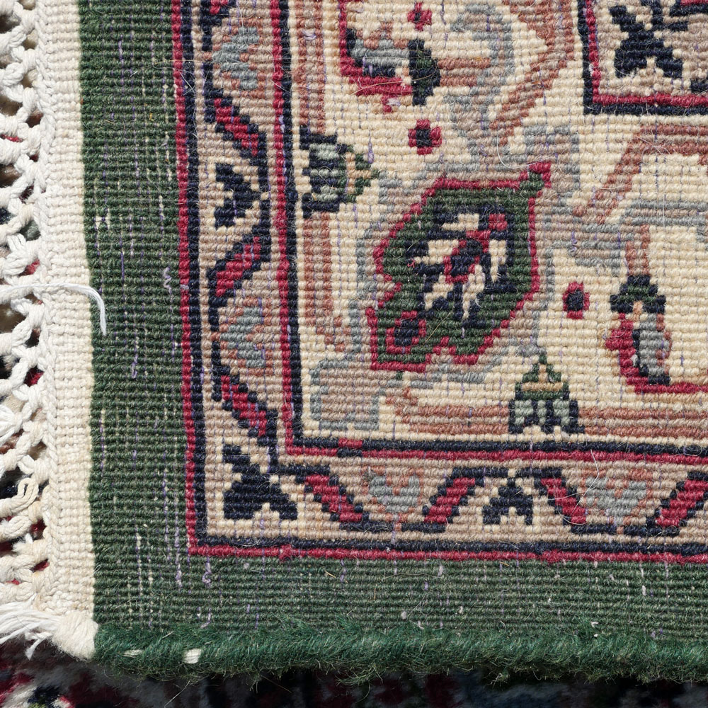 CONDITION: Some color run visible in white border and old moth damage only visible on the back but mostly still an attractive runner.