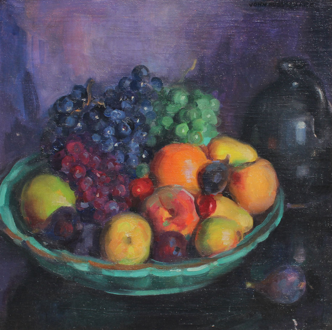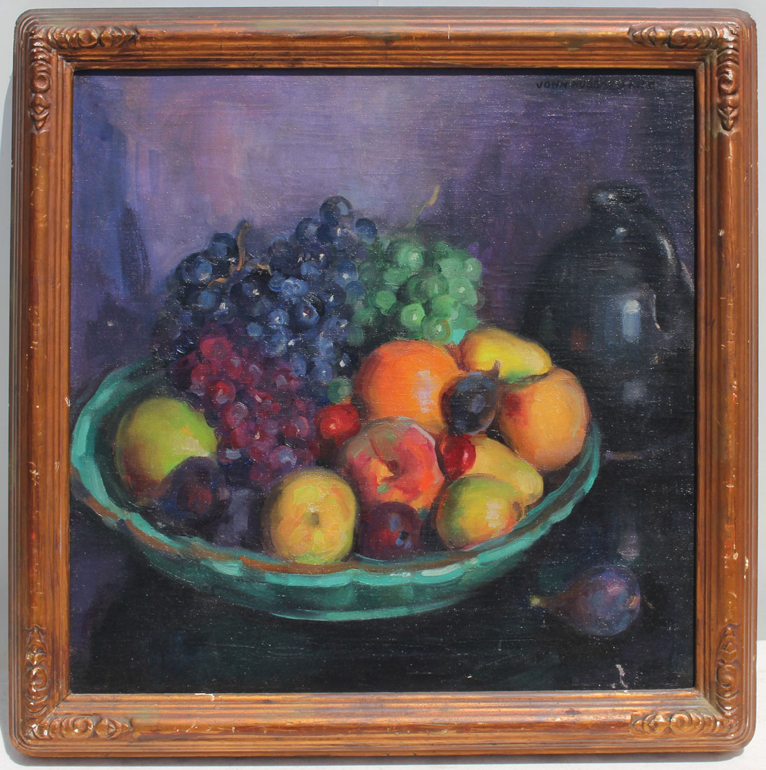 RICH, John Hubbard, (American, 1876-1954): Still Life Painting of Fruit, Oil/Canvas, 20'' x 20'', signed upper right and encased in period carved impressionist frame that measures 23.50'' x 23.50''.
