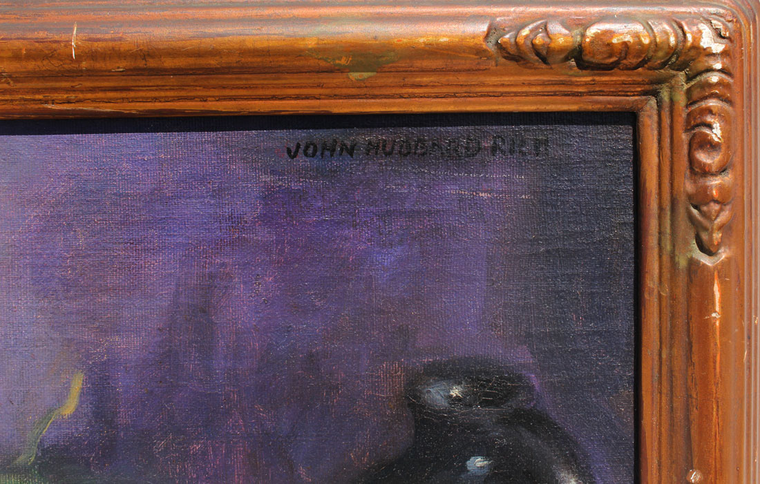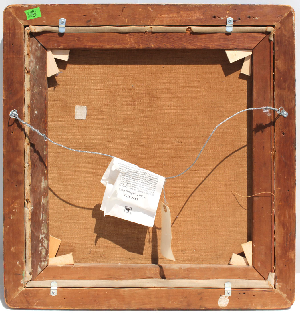 CONDITION: Scattered craquelure, abrasion lower right, several patches visible verso, frame shows ware, sold as is.