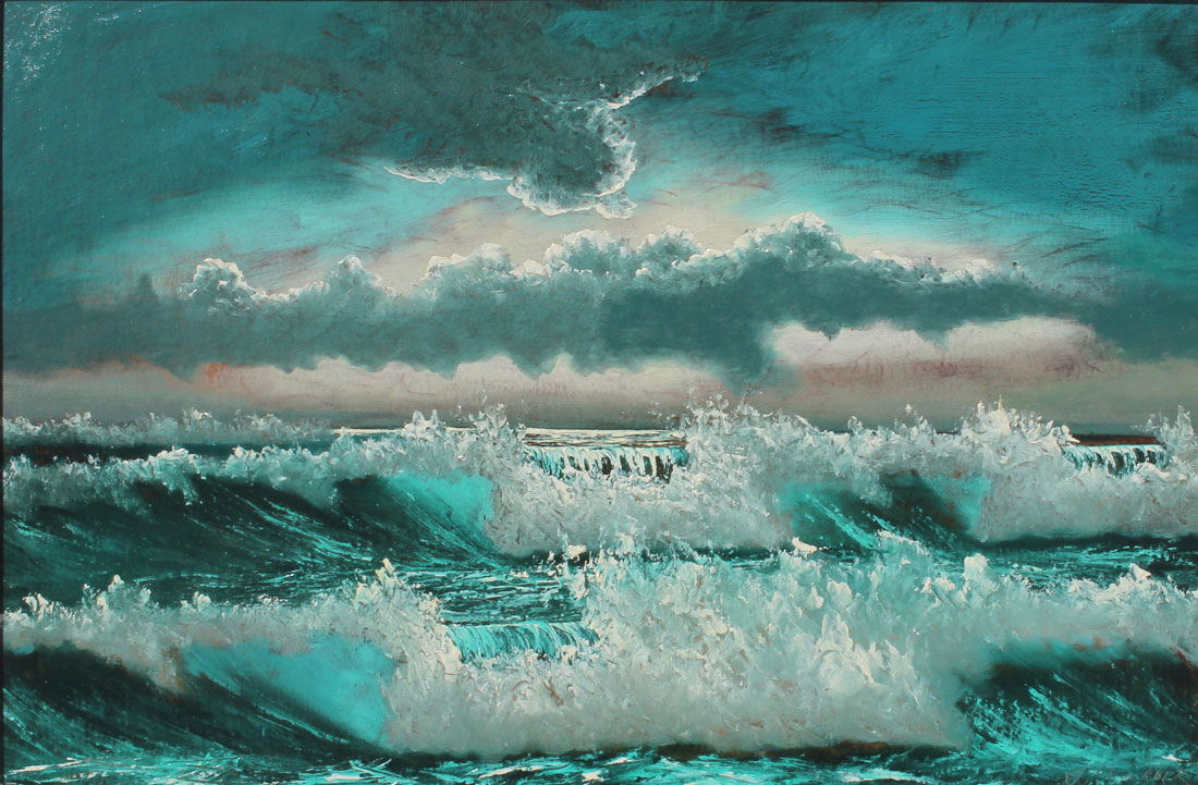 BUCKNER, George, (American, 1942-2002): Crashing Surf, Oil/Upson, 24'' x 35.75'', signed lower right, framed 29'' x 39.50'', A. E. Backus Museum label affixed verso.