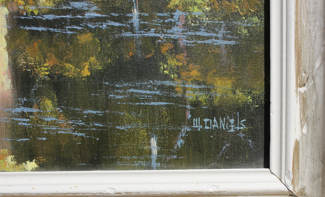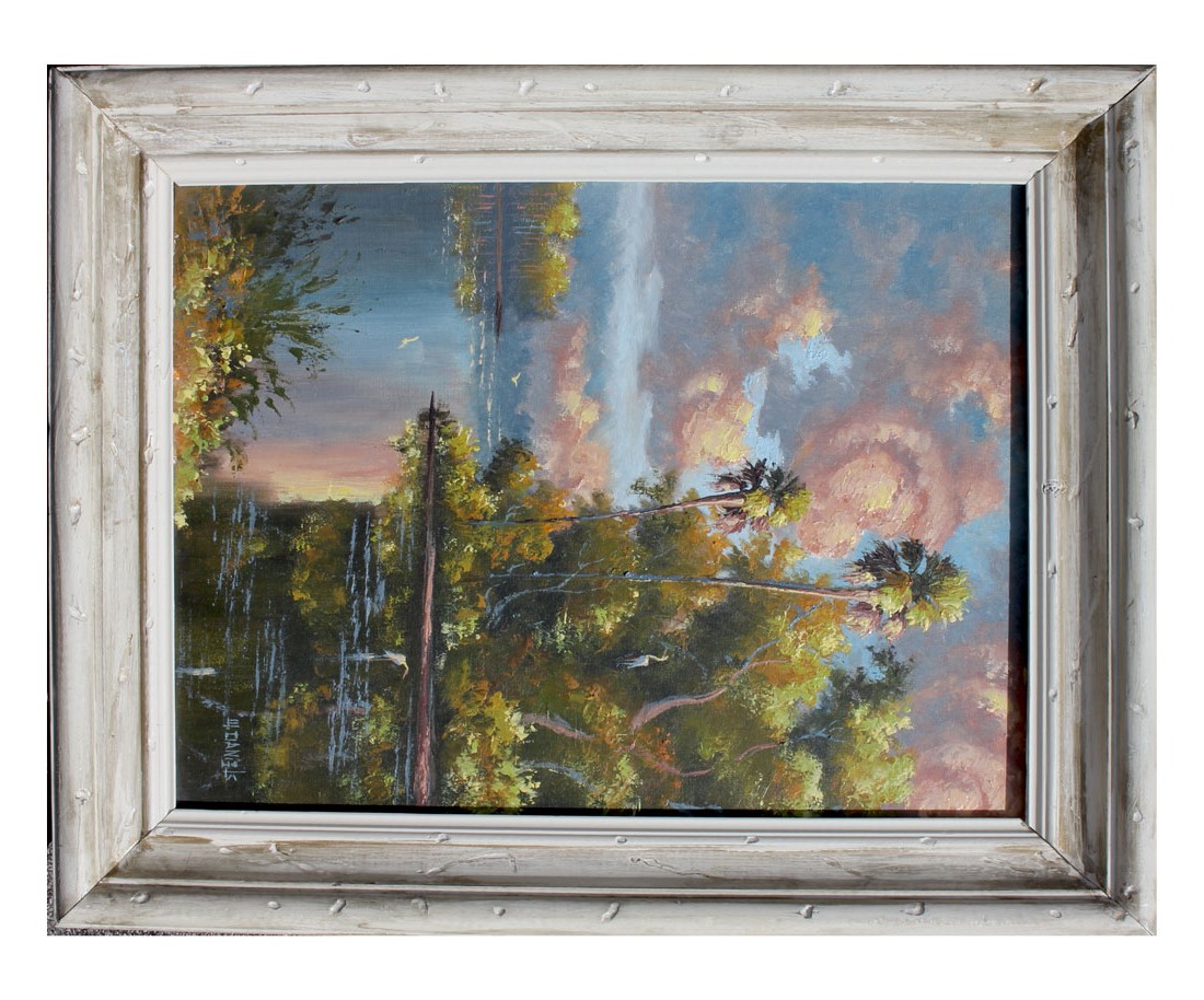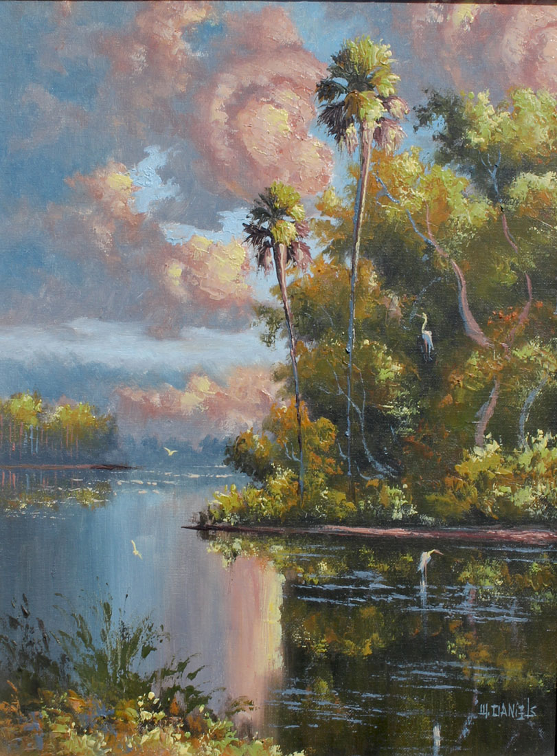 DANIELS, Willie, (American, 20th C.): Florida Highwaymen River Scene with Pink Clouds, Oil/Canvas, 20'' x 16'', signed lower right and framed 25'' x 21''.