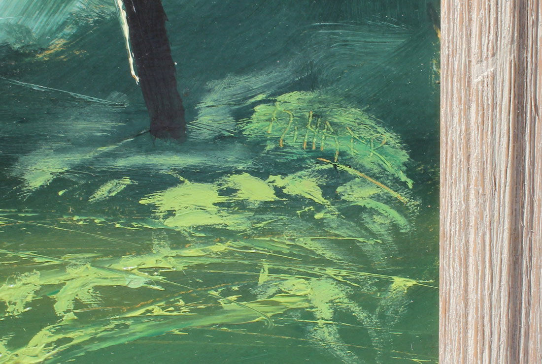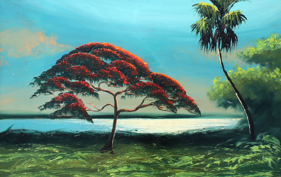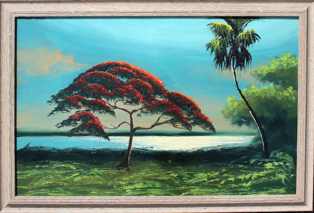 HAIR, Alfred, (American, 1941-1971): Poinciana Tree by the River, Oil/Upson, 23'' x 36'', signed lower right, framed, 27'' x 40''.