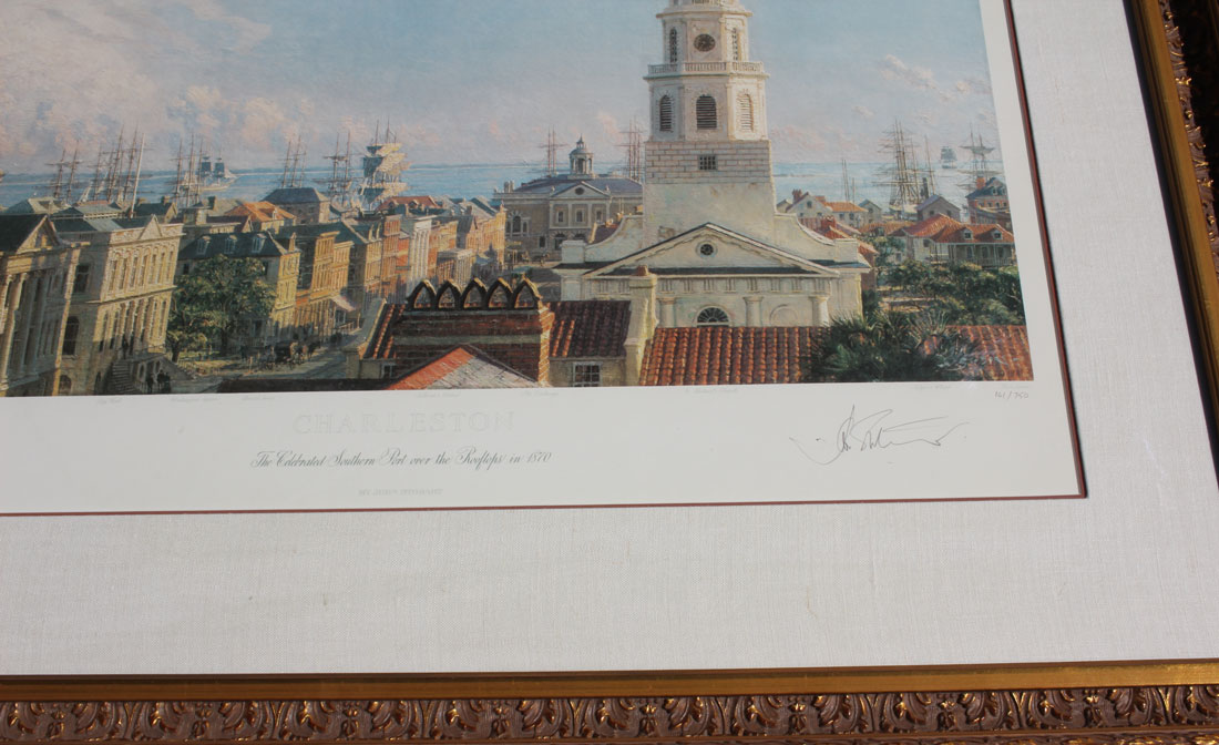 STOBART, John, (American, 1929- ): Charleston, the Celebrated Southern Port Over the Rooftops in 1870, Lithograph, sight size is 22'' x 29'', pencil signed lower right, numbered 161 of 750, framed 33'' x 40''.