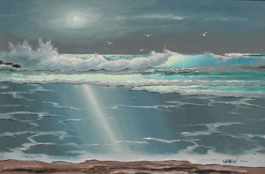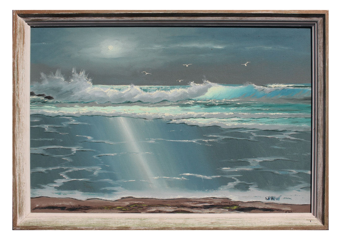 NEWTON, Sam, (American, 1948-): Florida Highwaymen Coastal Painting, Breaking Wave, Oil/Canvas, 24'' x 36'', signed lower right, framed, 27'' x 39''.