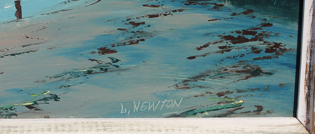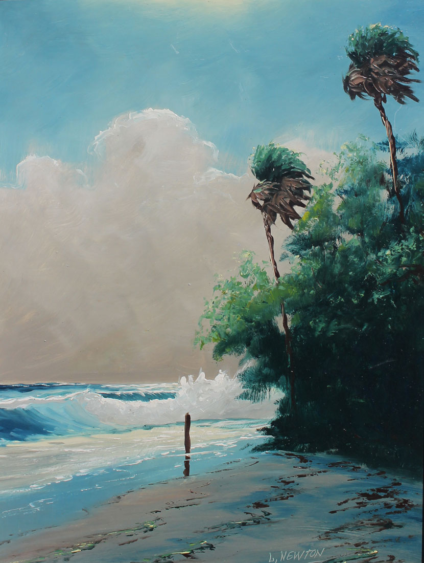 NEWTON, Lemuel (American, 1950-2014): Florida Highwaymen Coastal Scene with Surf Crashing, Oil/Masonite, 24'' x 18'', signed lower right, framed, 25.5'' x 19.75''.