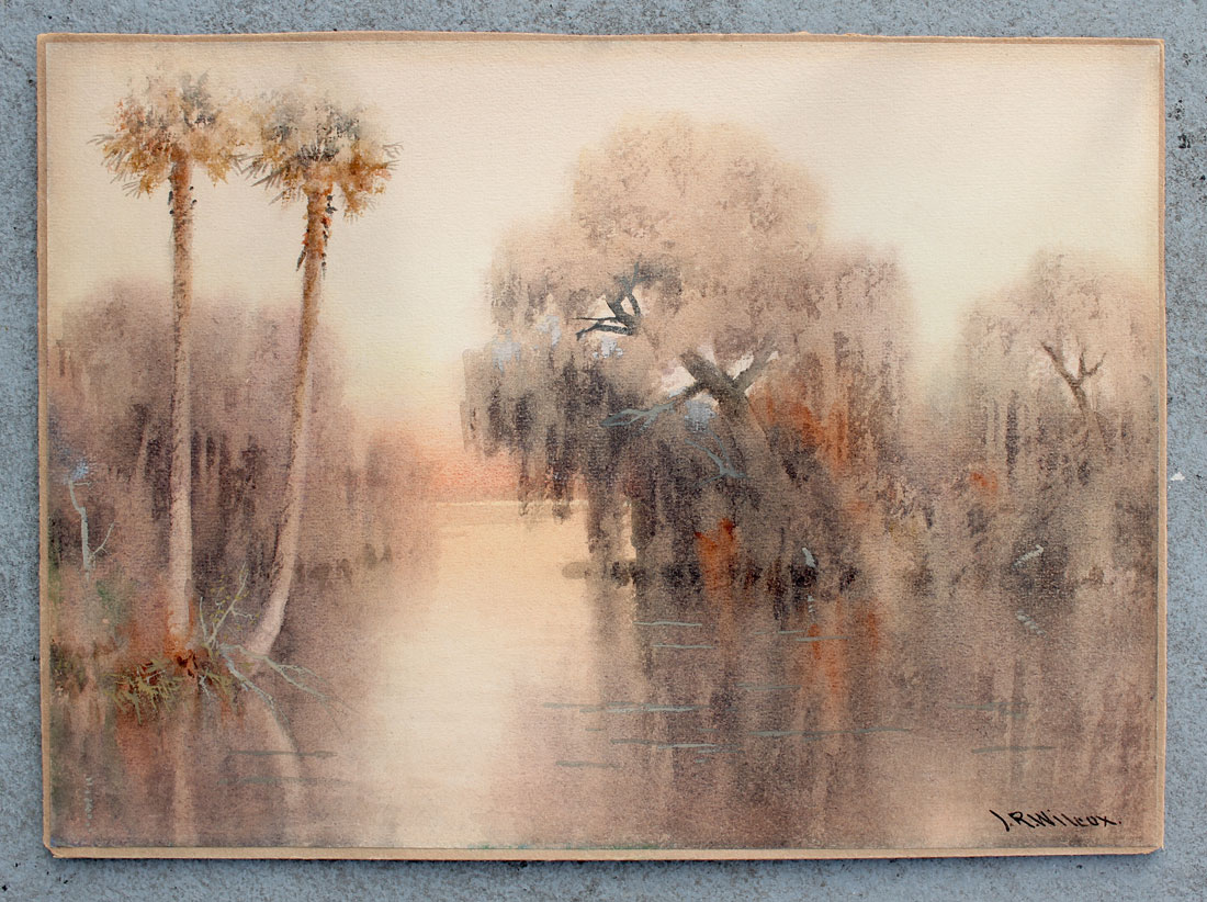 WILCOX, J. Ralph, (American, 1866-1915): ''Misty Tomoka'', Hazy Florida River Scene, Watercolor, sight size is 11.25'' x 15.25'', signed lower right, unframed.