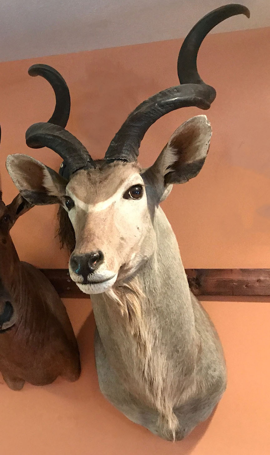 AFRICAN GREATER KUDU TROPHY SHOULDER MOUNT: One of the tallest and longest-horned antelopes, the greater kudu can weigh up to 600 pounds with horns up to 6 feet in length. Approx measurements 34'' l x 20'' w x 54'' h (with horns). Horns are removable.