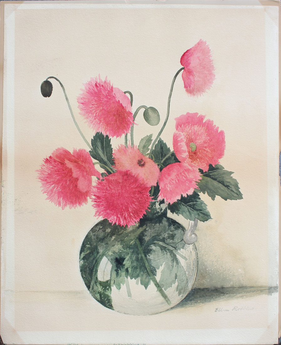 ROBBINS, Ellen, (American, 1828-1905): Still Life of Poppies, Watercolor, 22'' x 18'', signed lower right, unframed.