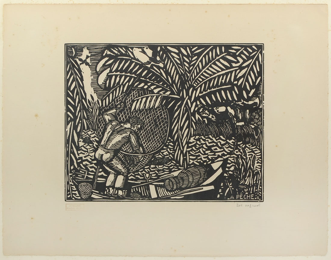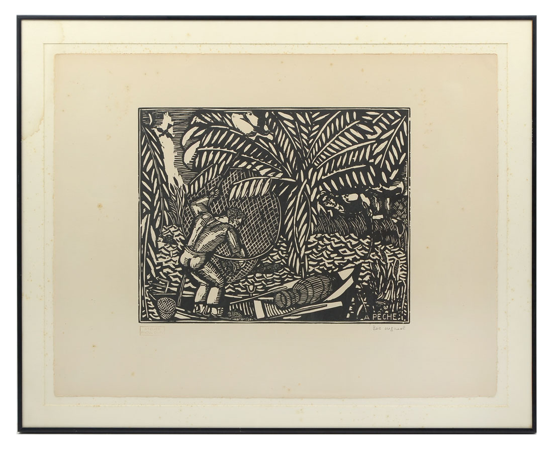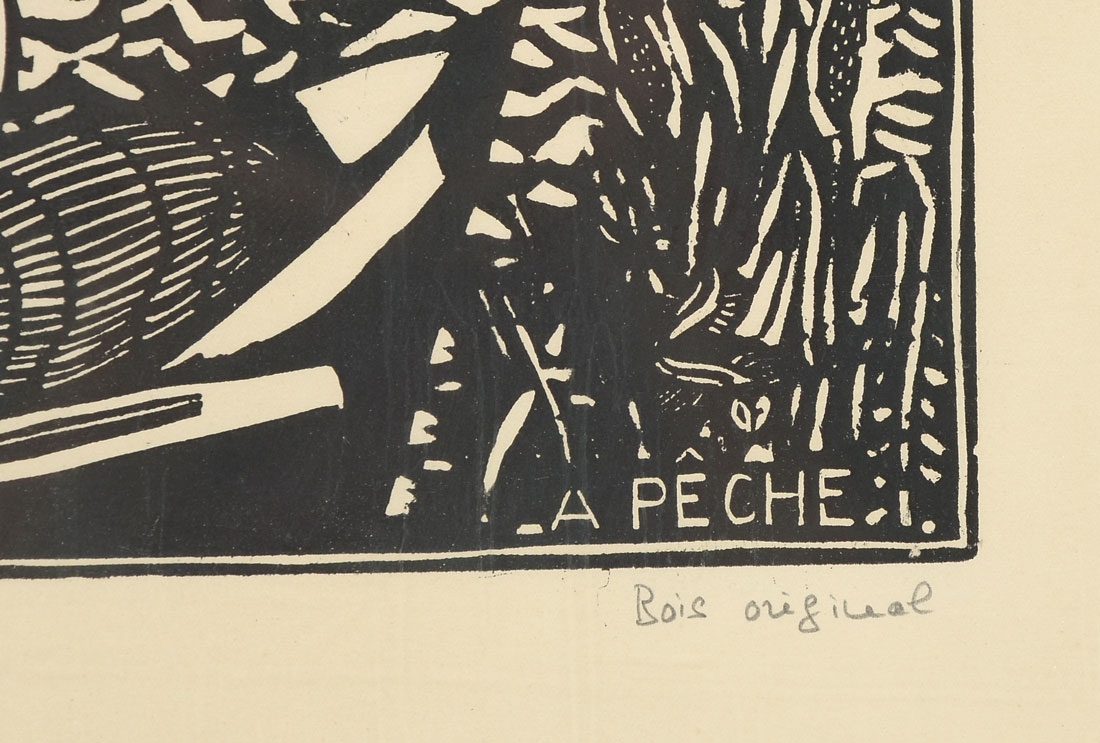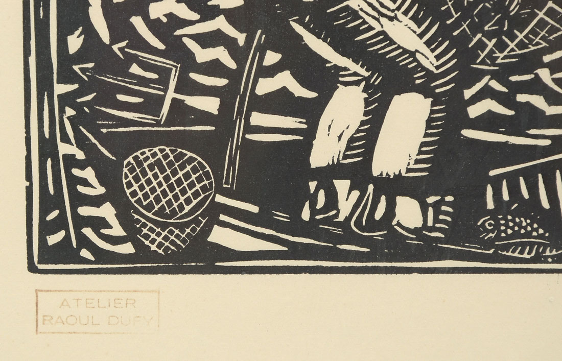 DUFY, Raoul, (French, 1877-1953): ''A Peche'', Woodcut, 19.50'' x 25.50'', marked lower right Bois Original, Atelier Raoul Dufy stamp lower left, framed 24.25'' x 30.25''.