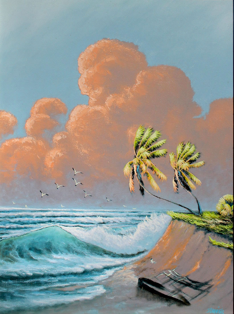 DANIELS, Johnny L. (American 1954-2009): Florida Highwaymen Painting, Coastal Sunrise, Oil/Canvas, 24'' x 18'', signed lower right, framed, 28'' x 22''.