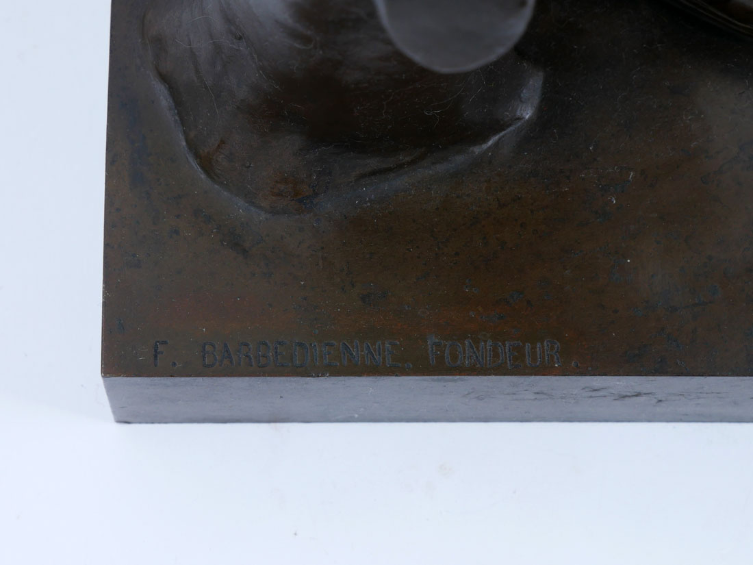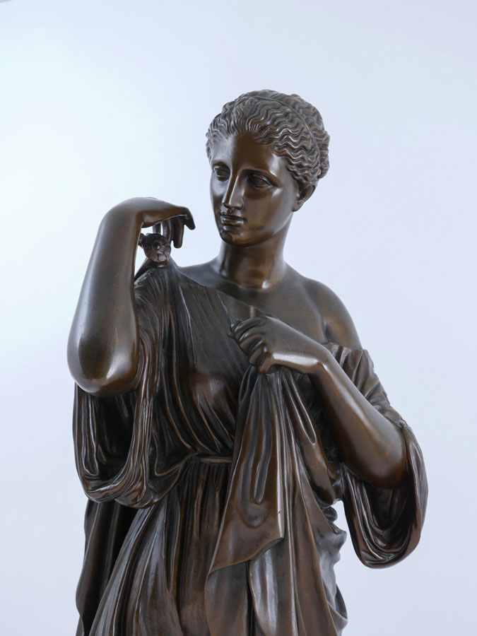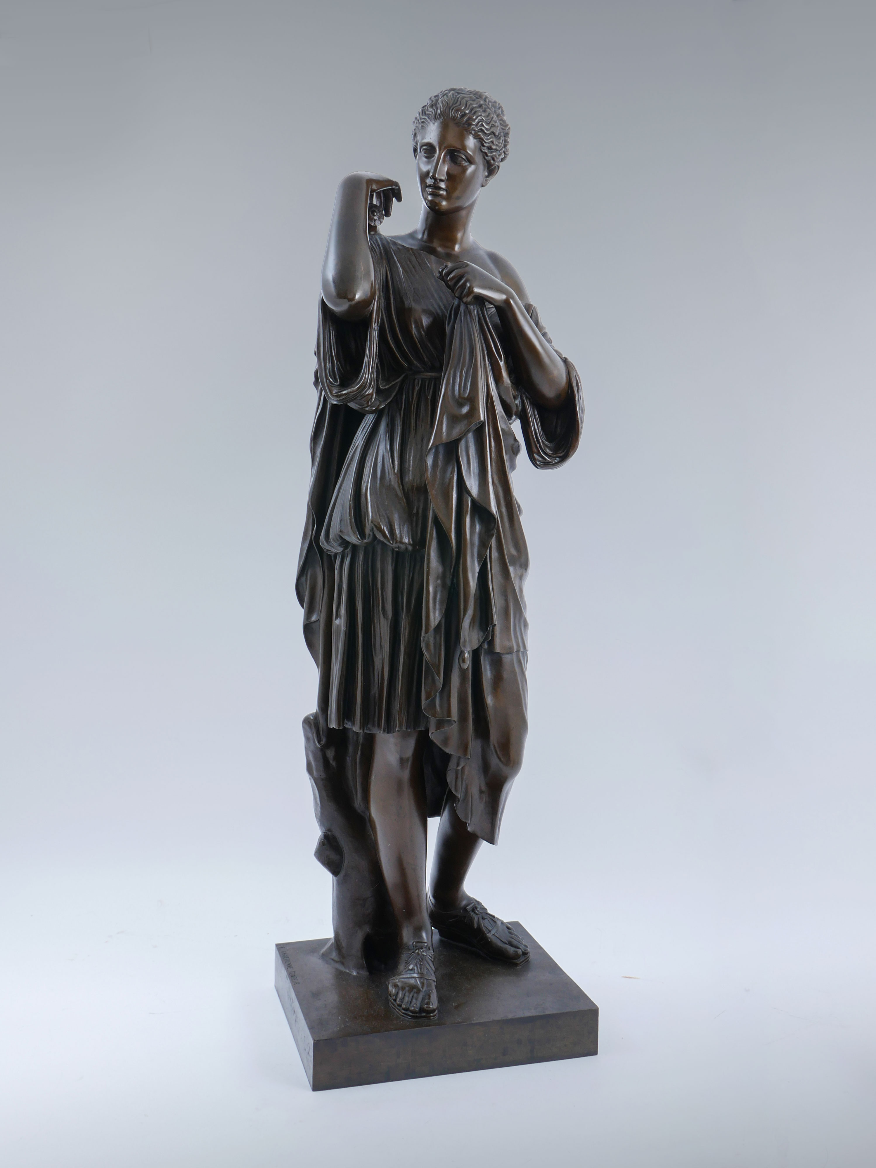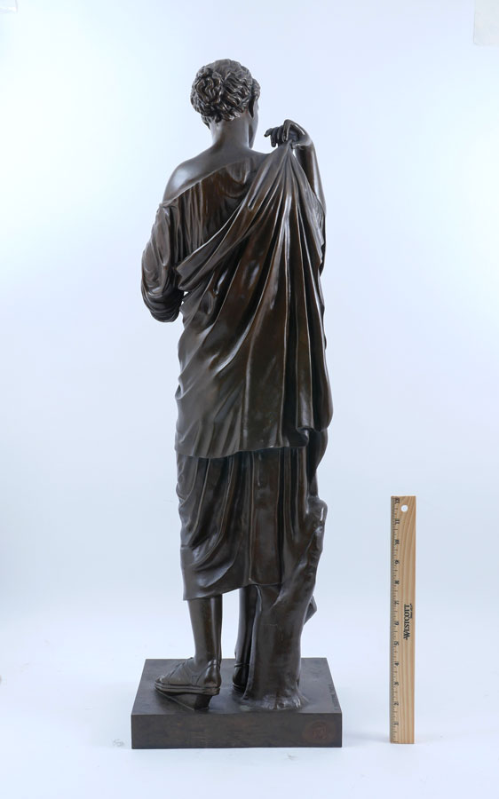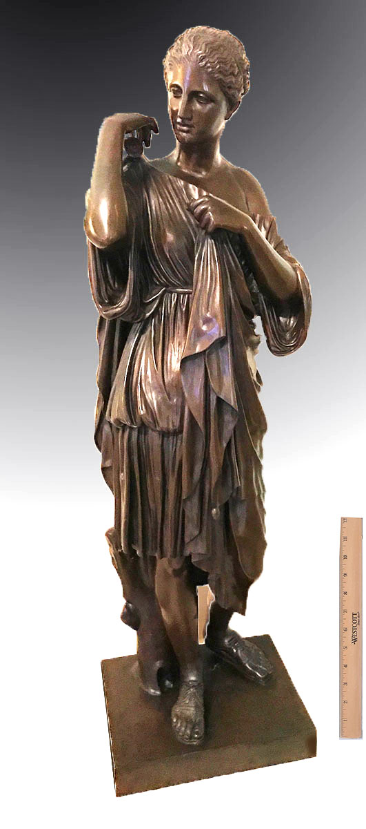 FERDINAND BARBEDIENNE BRONZE DIANE DE GABIES: 19th C. casting, wonderful patina, 34'' h., foundry mark to base.