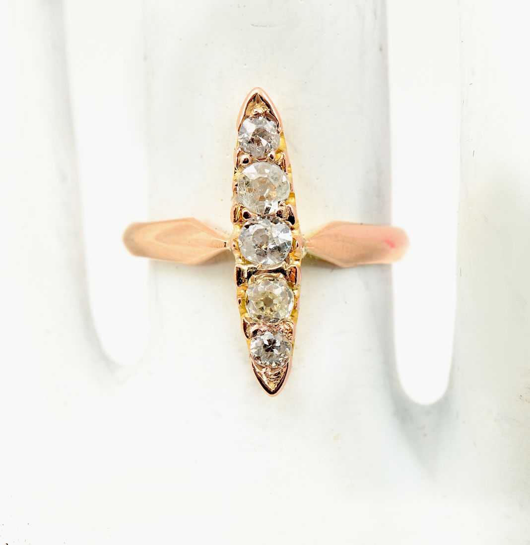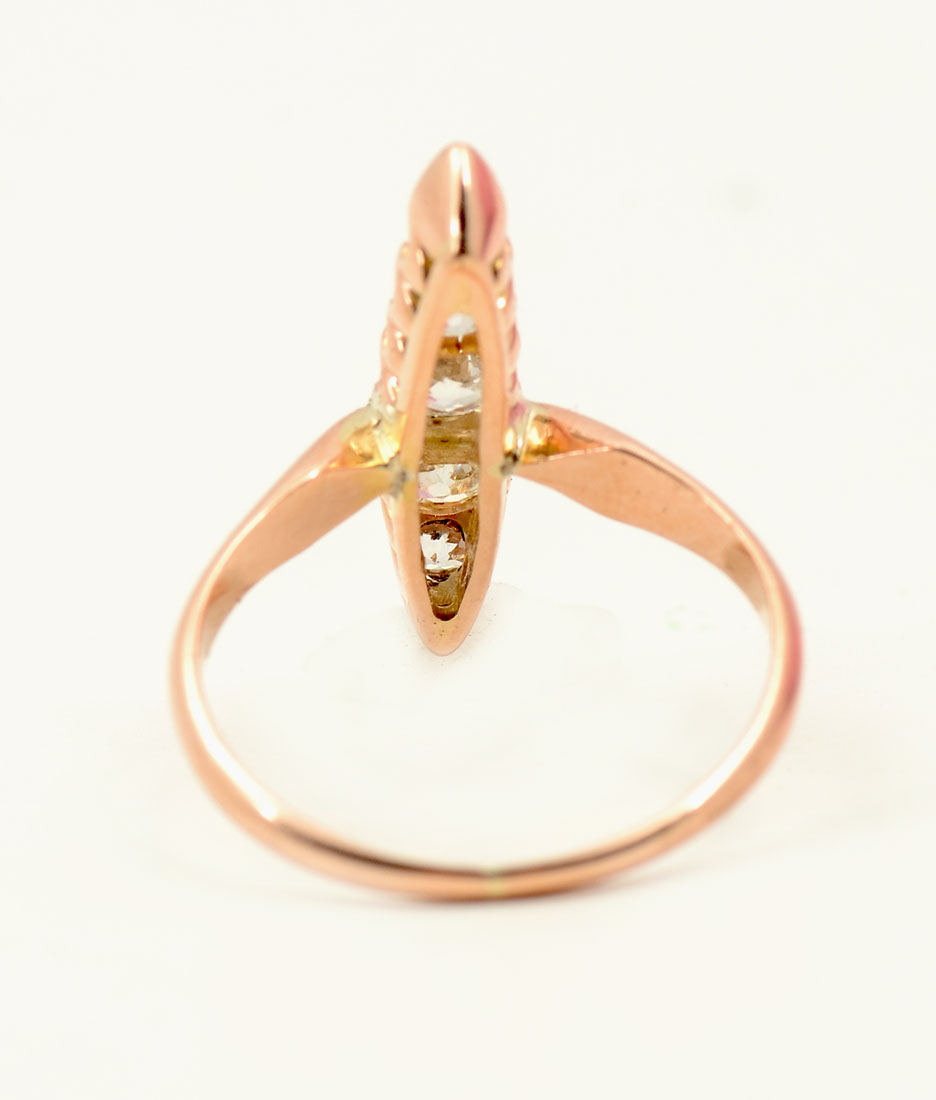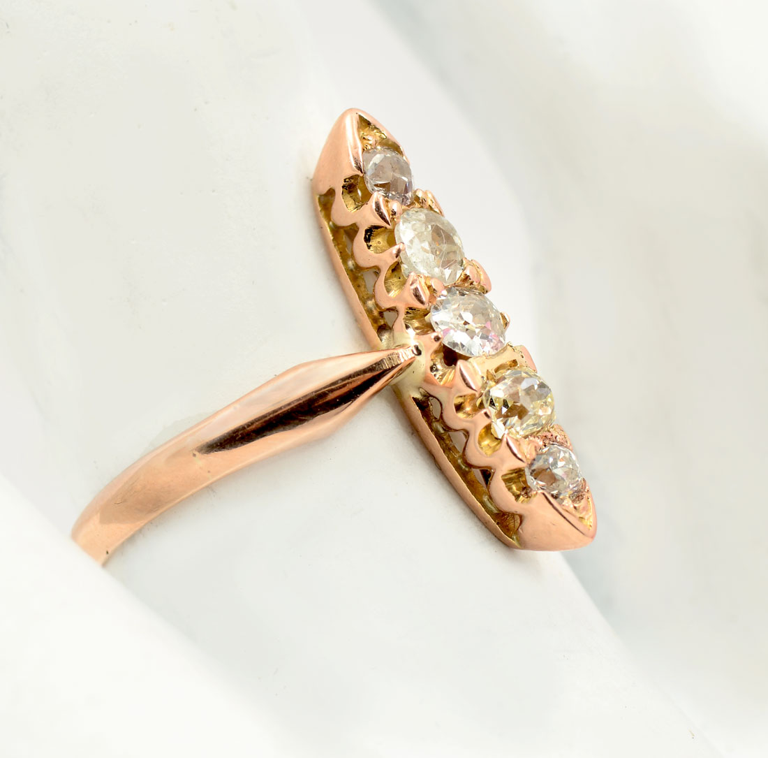 14K ROSE GOLD & DIAMOND RING: 14K rose gold antique .85CTW diamond ring. Size 4.5.