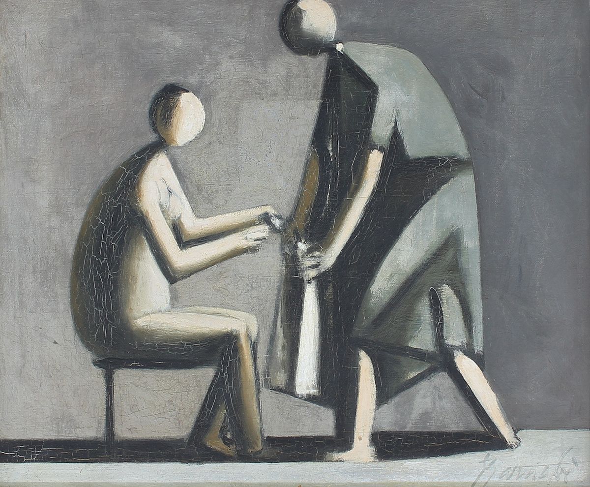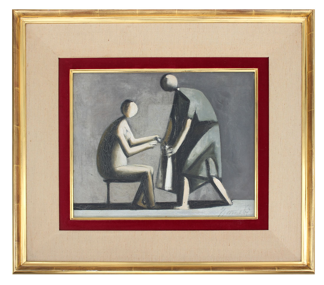 BARNABE, Duilio, (Italian, 1914-1961): Modernist Composition with 2 Figures, Oil/Canvas, 13'' x 16'', signed lower right, framed, 23'' x 26''. Sold with book about the artist.